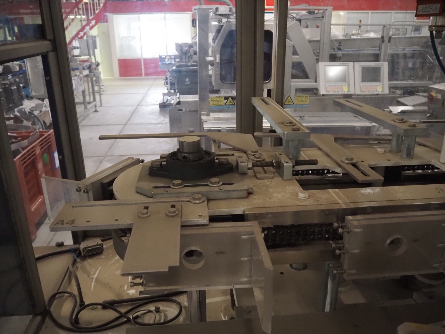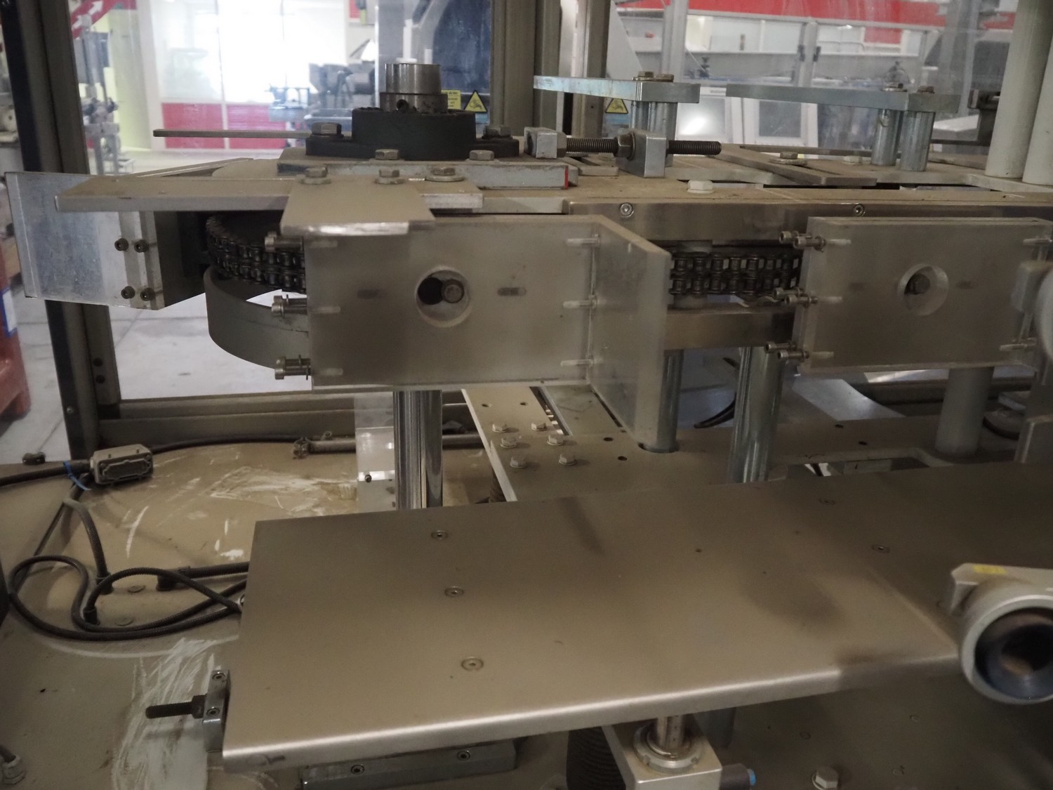 Betti S.r.l. packaging machine used for potatoes, machine model: NB/70/24-W.DX, serial number: 2040, 400 V, 3 Ph, 50 Hz, 18 A, s/s rollers, roller width: 215 mm and 225 mm, chain belt with dividers, divider height: 120 mm, distance between dividers: 370 mm, total dimensions: 6250 mm x 1700 mm x 2080 mm.
