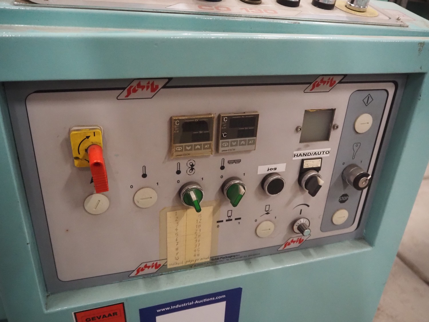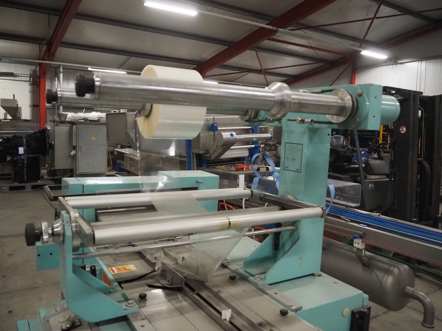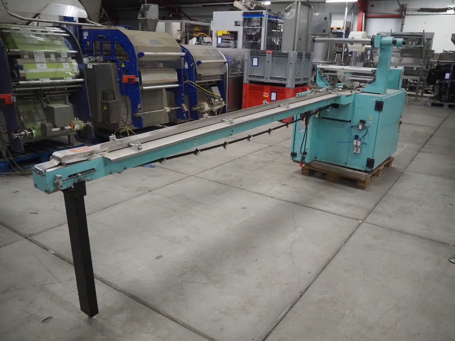 Schib Packaging S.r.l flowpacker, model: CO 130, number: 96612, year of construction: 1996, 380/220 V, 3 Ph, 50 Hz, dimensions: 5090 mm x 950 mm x 1700 mm.
