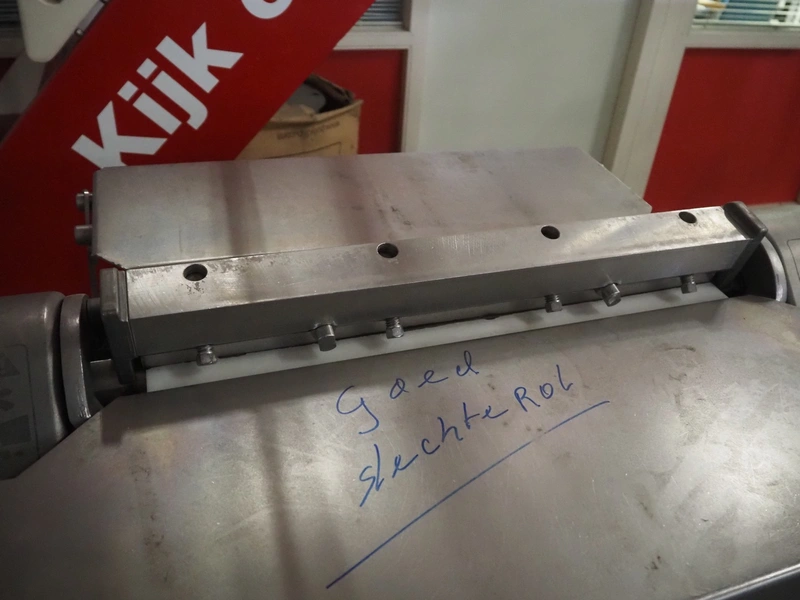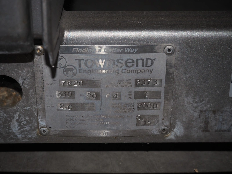 Townsend mobile skinning machine, type: 7620, serial number: 2373, year of construction: 2000, 380 V, 3 Ph, 50 Hz, 2 A, working width: 510 mm, total dimensions: 930 mm x 820 mm x 1030 mm.