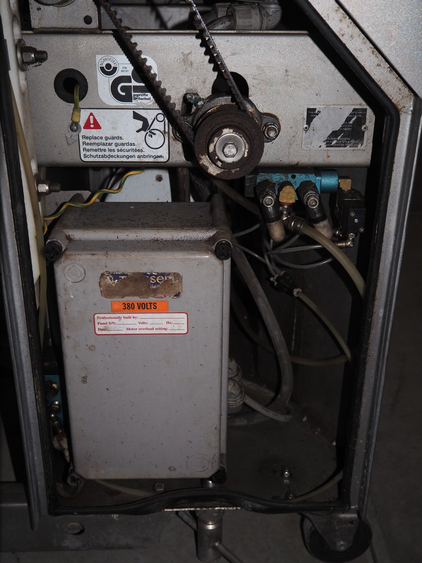 Townsend mobile skinning machine, type: 7620, serial number: 2373, year of construction: 2000, 380 V, 3 Ph, 50 Hz, 2 A, working width: 510 mm, total dimensions: 930 mm x 820 mm x 1030 mm.