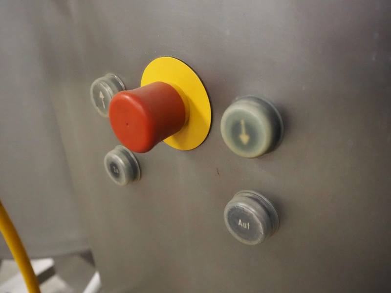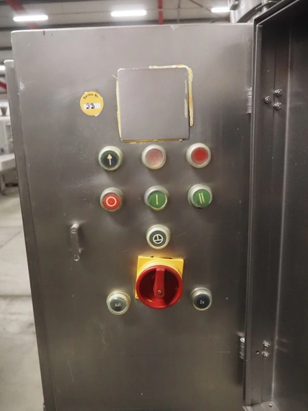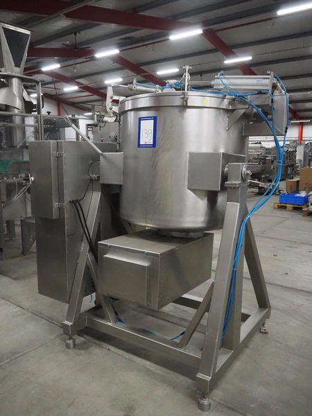H. Glass tumbler with agitator with scrapers, type: VSM 570F, machine number: 1733, 220/380 V, 0.7 kW, inside dimensions: Ø 1000 mm x 850 mm, total dimensions: 1550 mm x 1250 mm x 1950 mm.