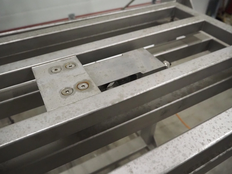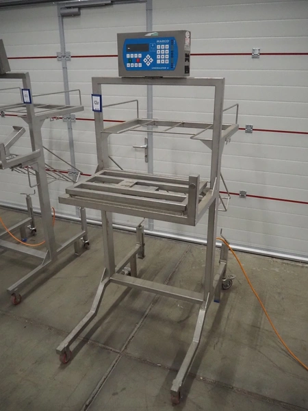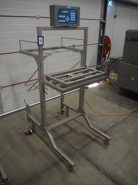 Marco weighing scale on s/s frame, model: LineMaster V, serial number: 226984, year of construction: 2017, 110-230 V, weighing range: 20-20000g, e=1g, dimensions scale: 440 mm x 400 mm, total dimensions: 1280 mm x 550 mm x 1780 mm.