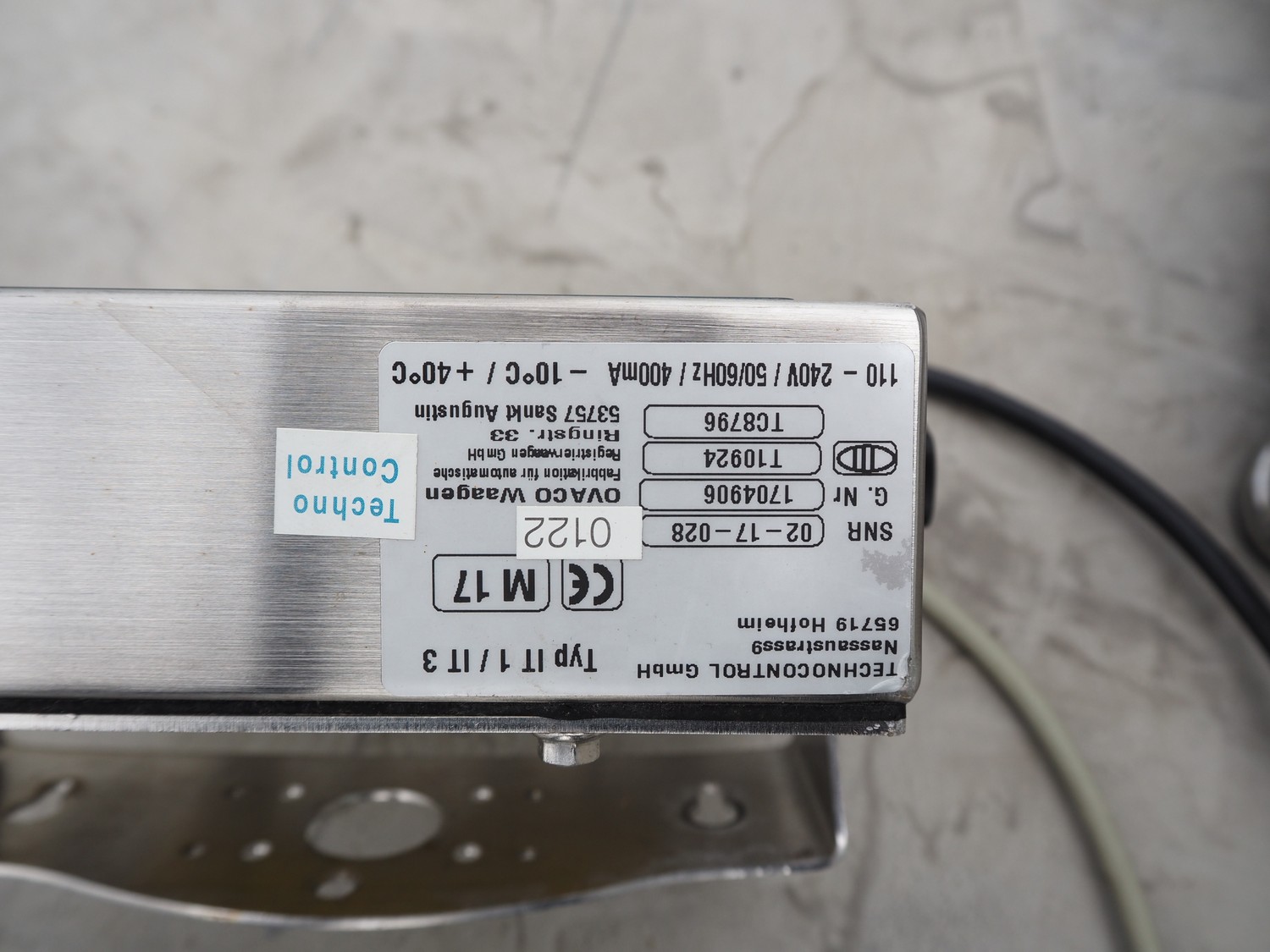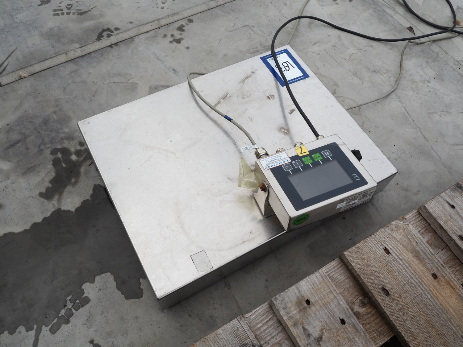 TECHNOCONTROL GmbH floor weighing scale, type: IT 1 / IT 3, serial number: 02-17-028, year of construction: 2017, 110-240 V, 50/60 Hz, 400mA, dimensions scale: 660 mm x 550 mm, total dimensions: 800 mm x 650 mm x 1520 mm.