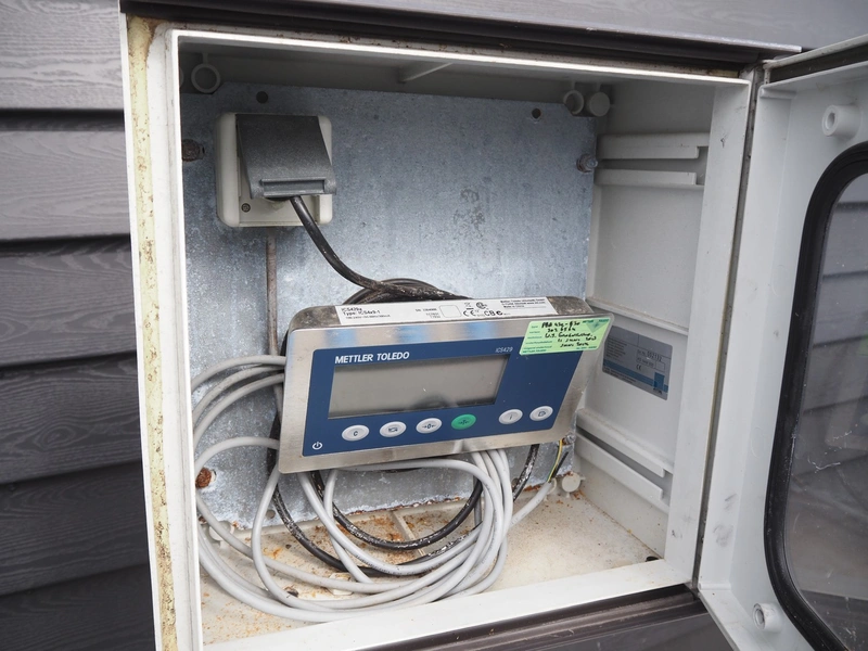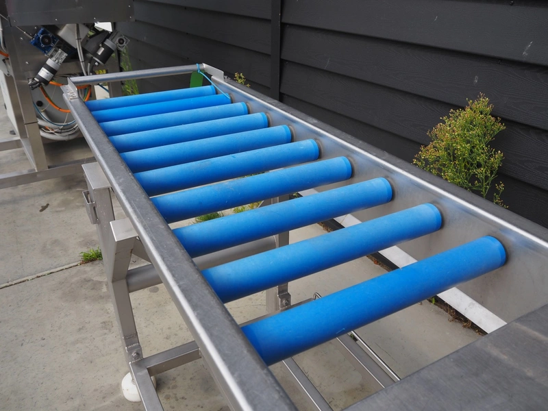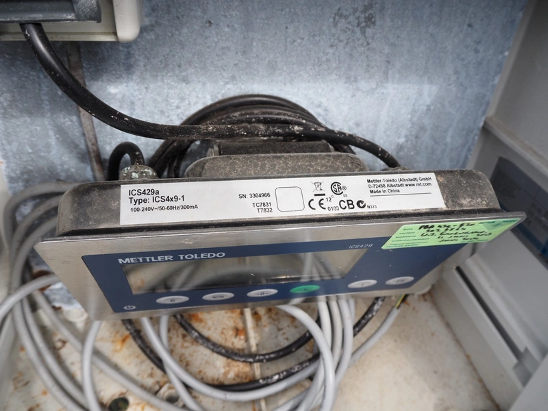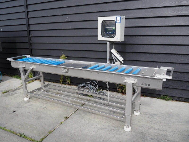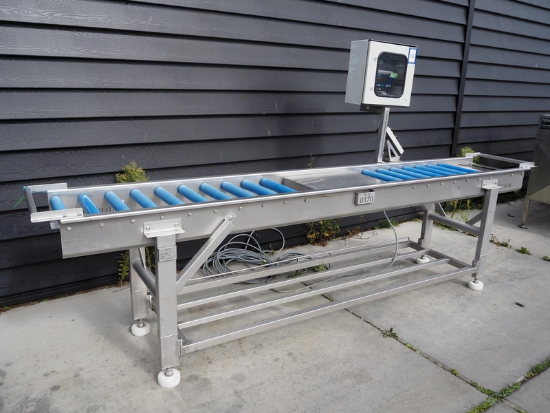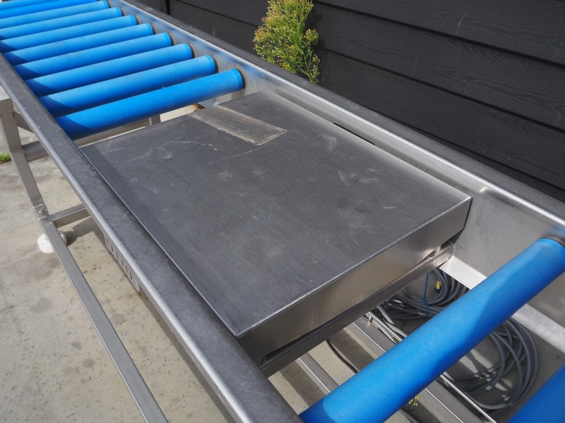 Feltracon roller conveyor with Mettler Toledo weighing scale, roller conveyor type: 72K, number: 3575-72K1, year of construction: 2008, plastic rollers, roller width: 410 mm, Mettler Toledo weighing scale type: ICS4x9-1, serial number: 3304966, total dimensions: 3160 mm x 750 mm x 1600 mm.