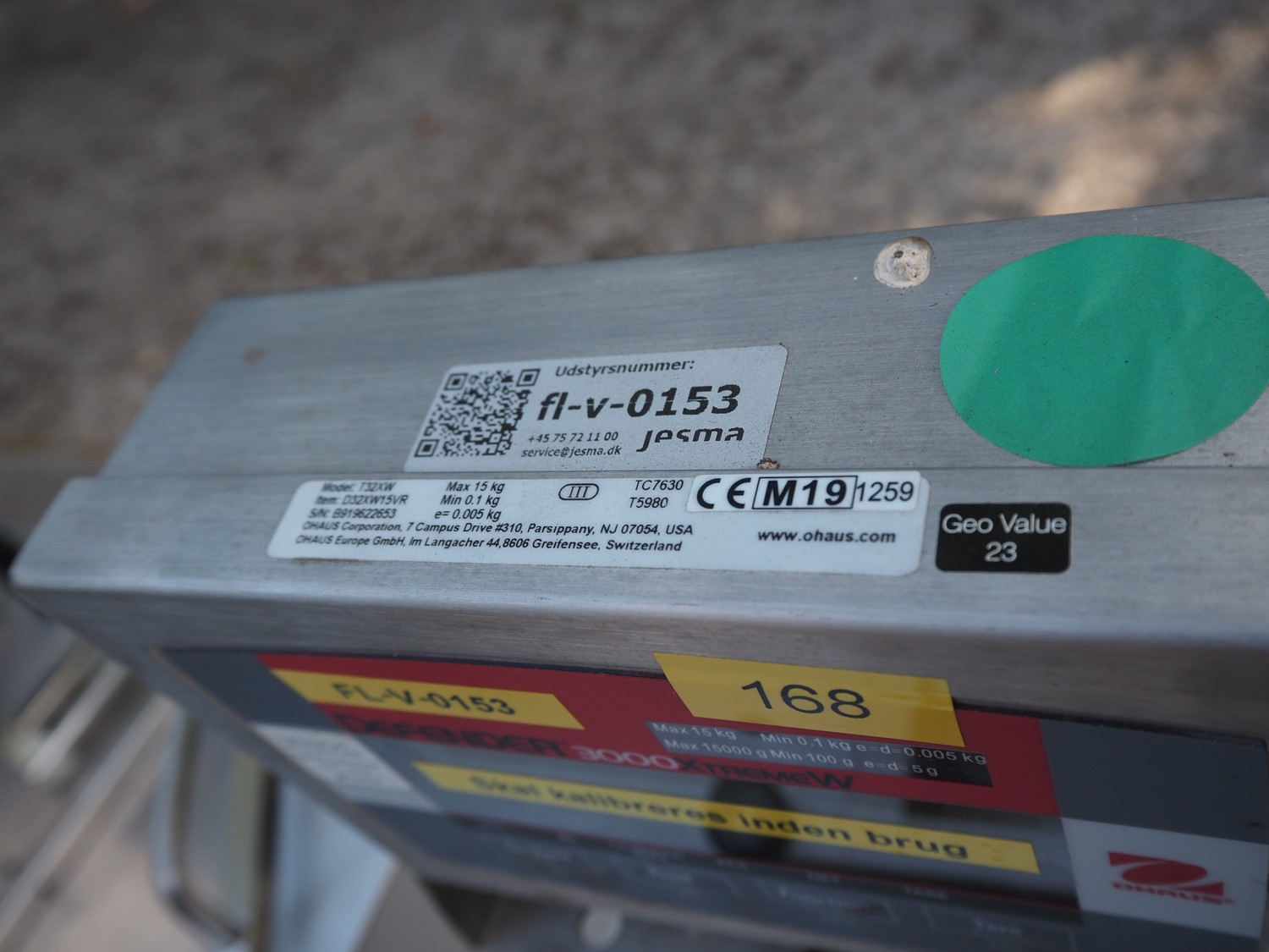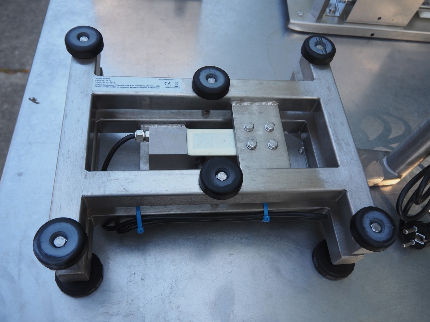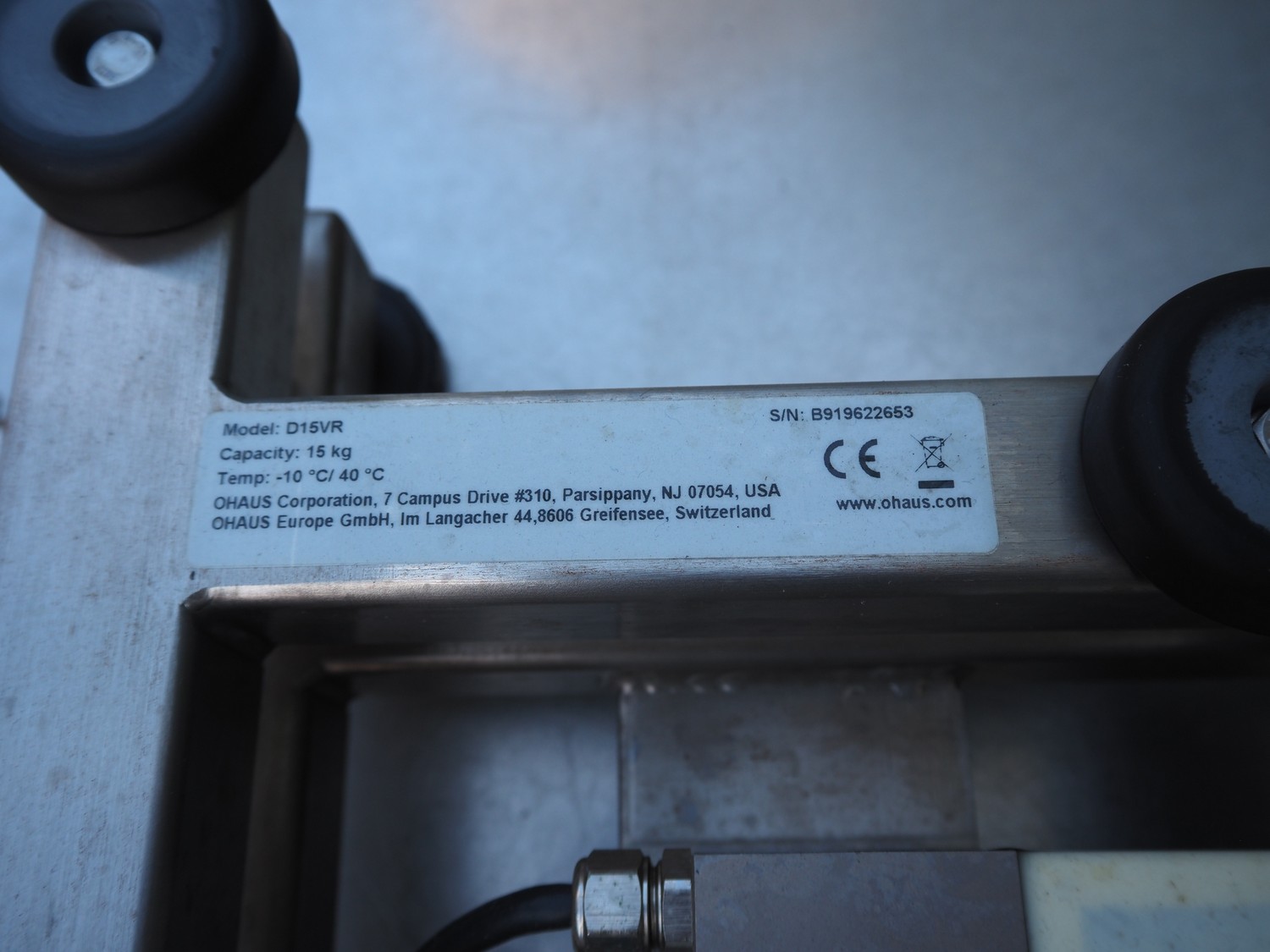 Ohaus weighing scale, model: T32XW, serial number: B919622653, 100/400 V, 50/60 Hz, 1 A, maximum: 15 kg, minimum: 0.1 kg, e= 0.005 kg, scale dimensions: 355 mm x 315 mm, total dimensions: 530 mm x 315 mm x 560 mm. Lot located on other location in Urk (NL). Viewing and pick-up in consultation with Industrial Auctions BV.