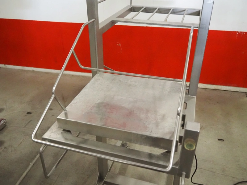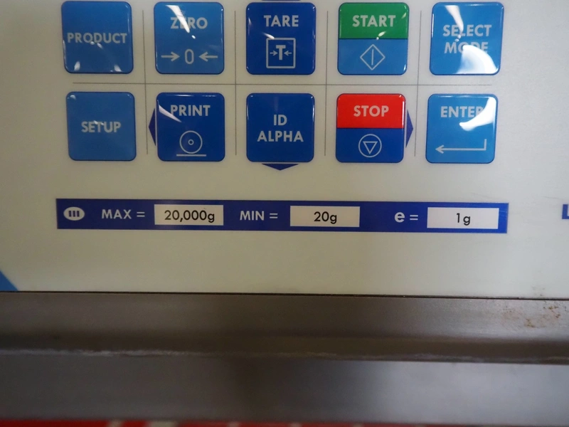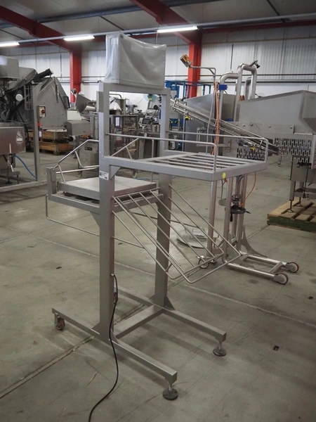 Marco weighing scale on s/s frame, model: LMIII, serial number: 49586, 90-250 V, 50-60 Hz, 0.8 A, maximum: 20000 gram, minimum: 20 gram, e= 1 gram, dimensions scale: 440 mm x 400 mm, total dimensions: 1280 mm x 550 mm x 1780 mm.