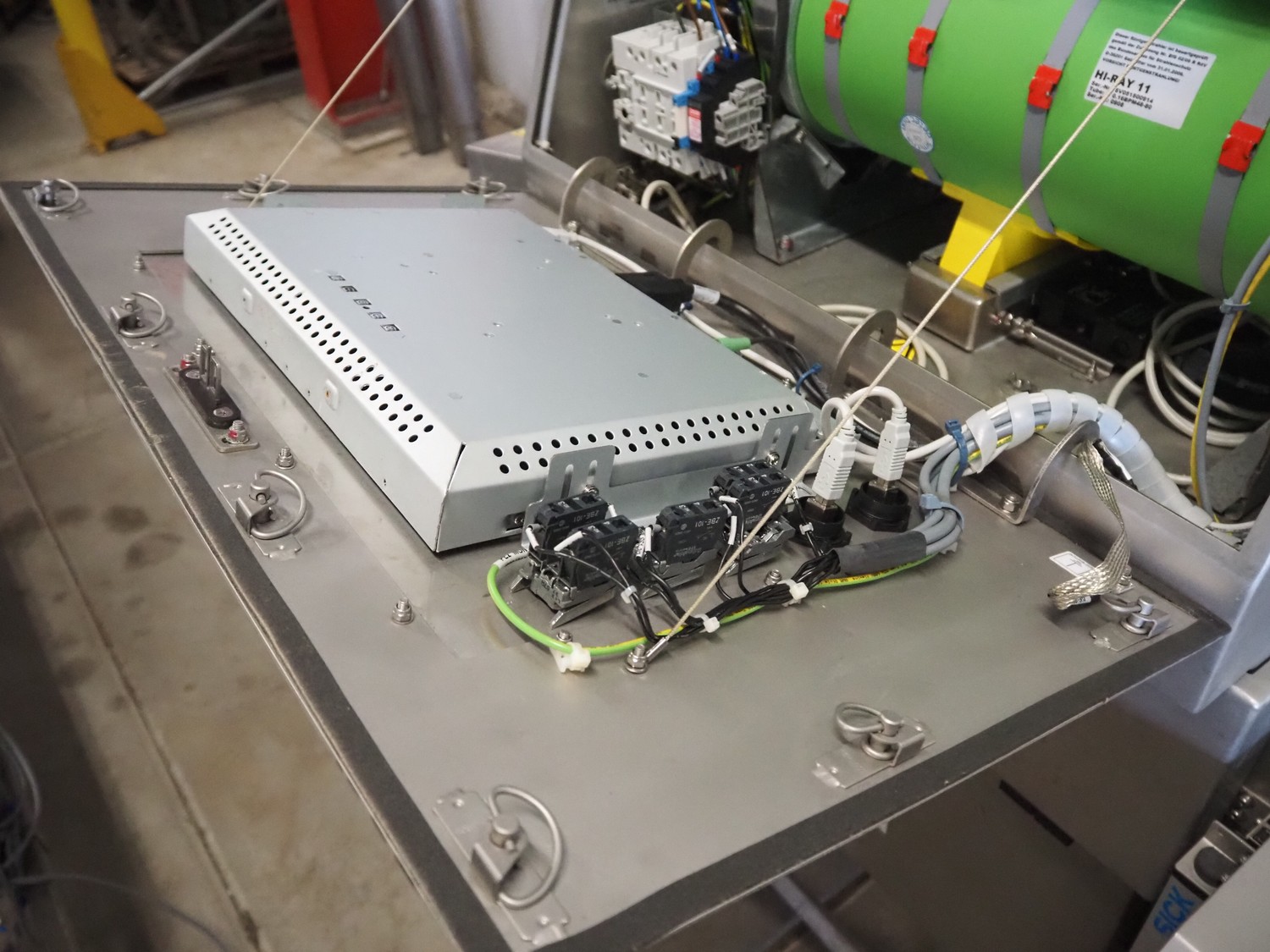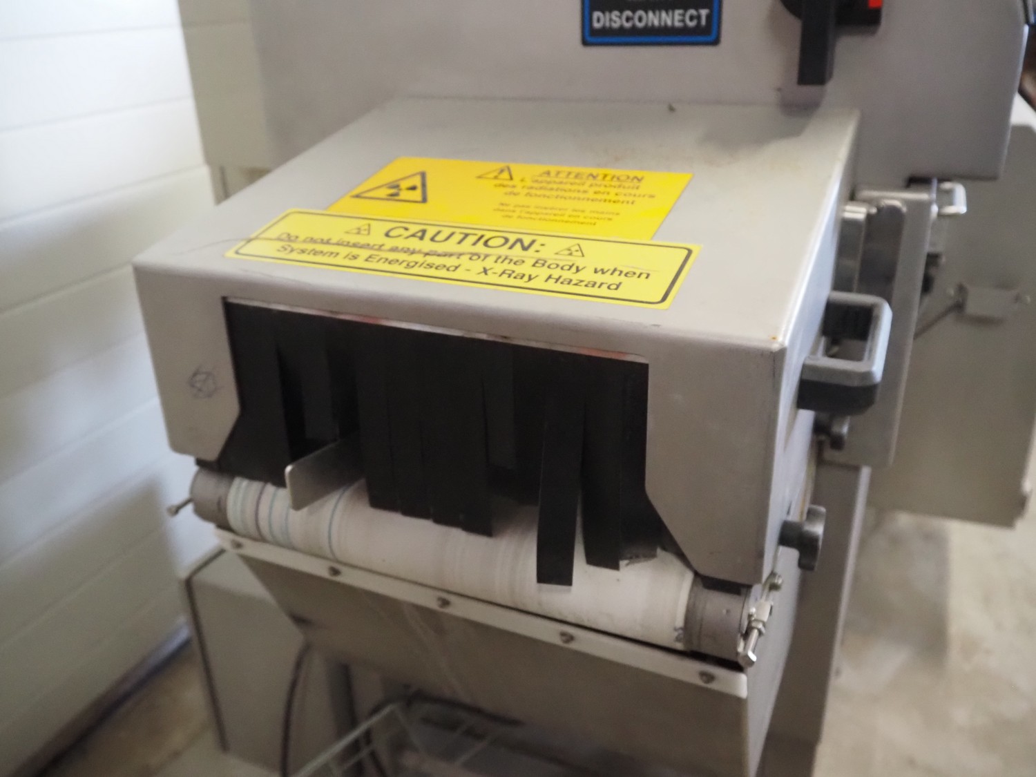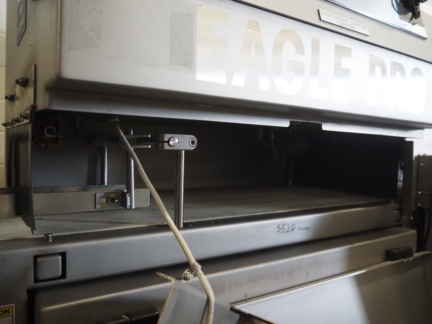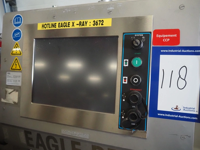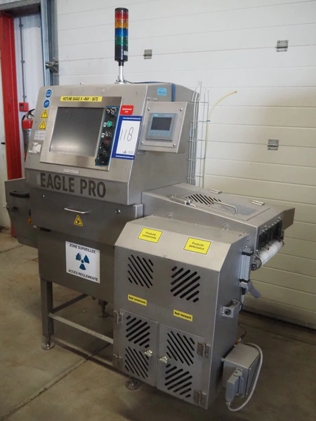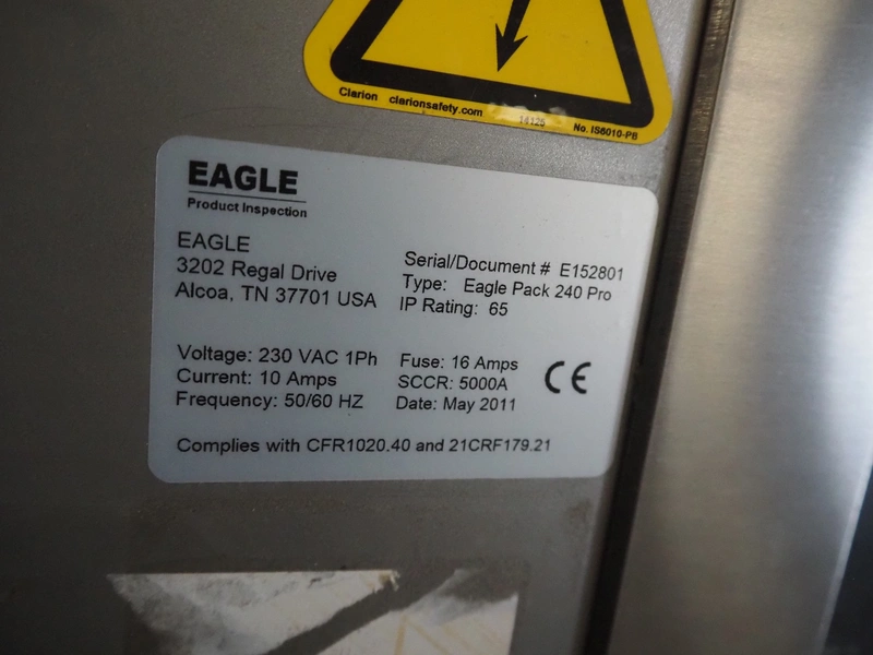 Eagle x-ray scanner with rejector, type: Eagle Pack 240 Pro, serial number: E152801, year of construction: 2011, 230 V, 1 Ph, 50/60 Hz, 10/16 A, plastic belt, belt width: 300 mm, clearance: 300 mm x 100 mm, total dimensions: 1600 mm x 1000 mm x 1900 mm.