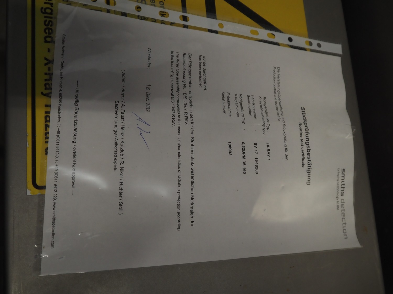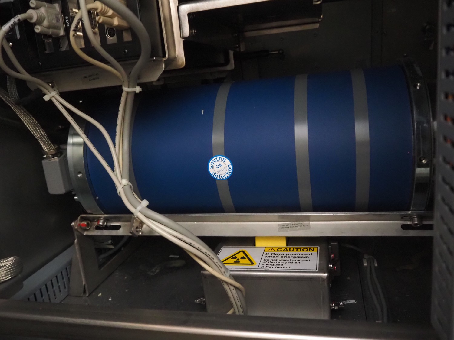 Smiths detection X-Ray scanner, type: Pack 320/430, X-ray tube assembly type: HI-RAY 7, serial number: 101285, year of construction: 05-2008, plastic belt, clearance: 455 mm x 240 mm, total dimensions: 1550 mm x 900 mm x 2100 mm.