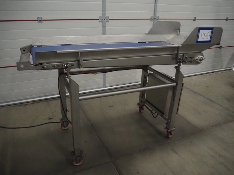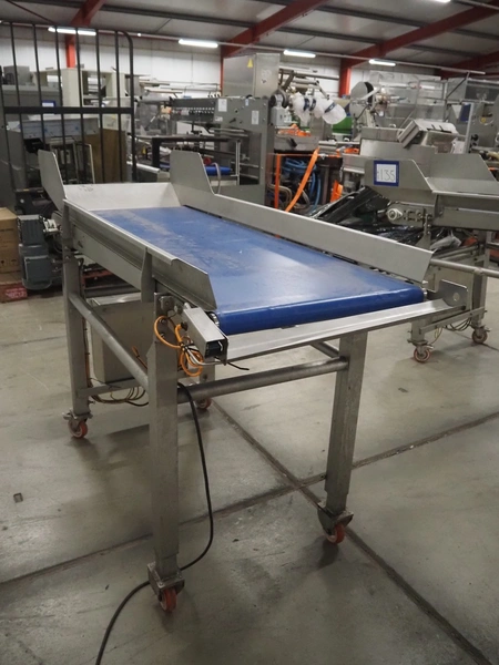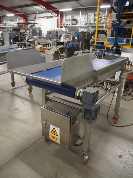 MACS Machinebouw bv mobile transport belt, type: LEESBAND, machine number: 15055-1, year of construction: 2015, 230 V, 2 Ph, 50 Hz, s/s frame, plastic belt, belt width: 570 mm, total dimensions: 1880 mm x 800 mm x 1200 mm.