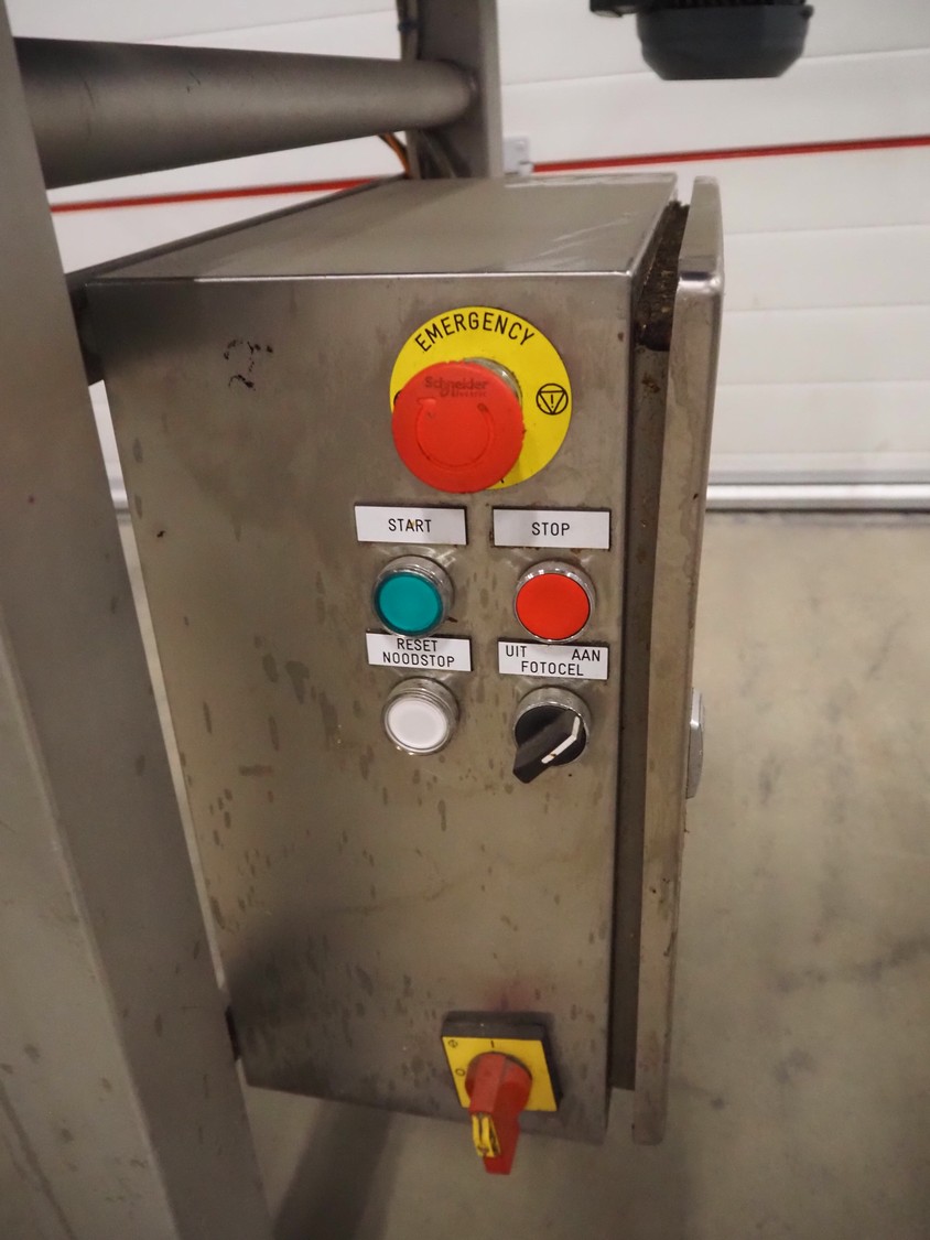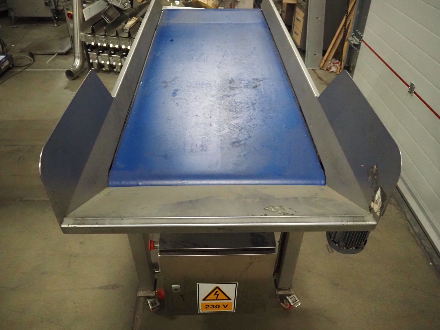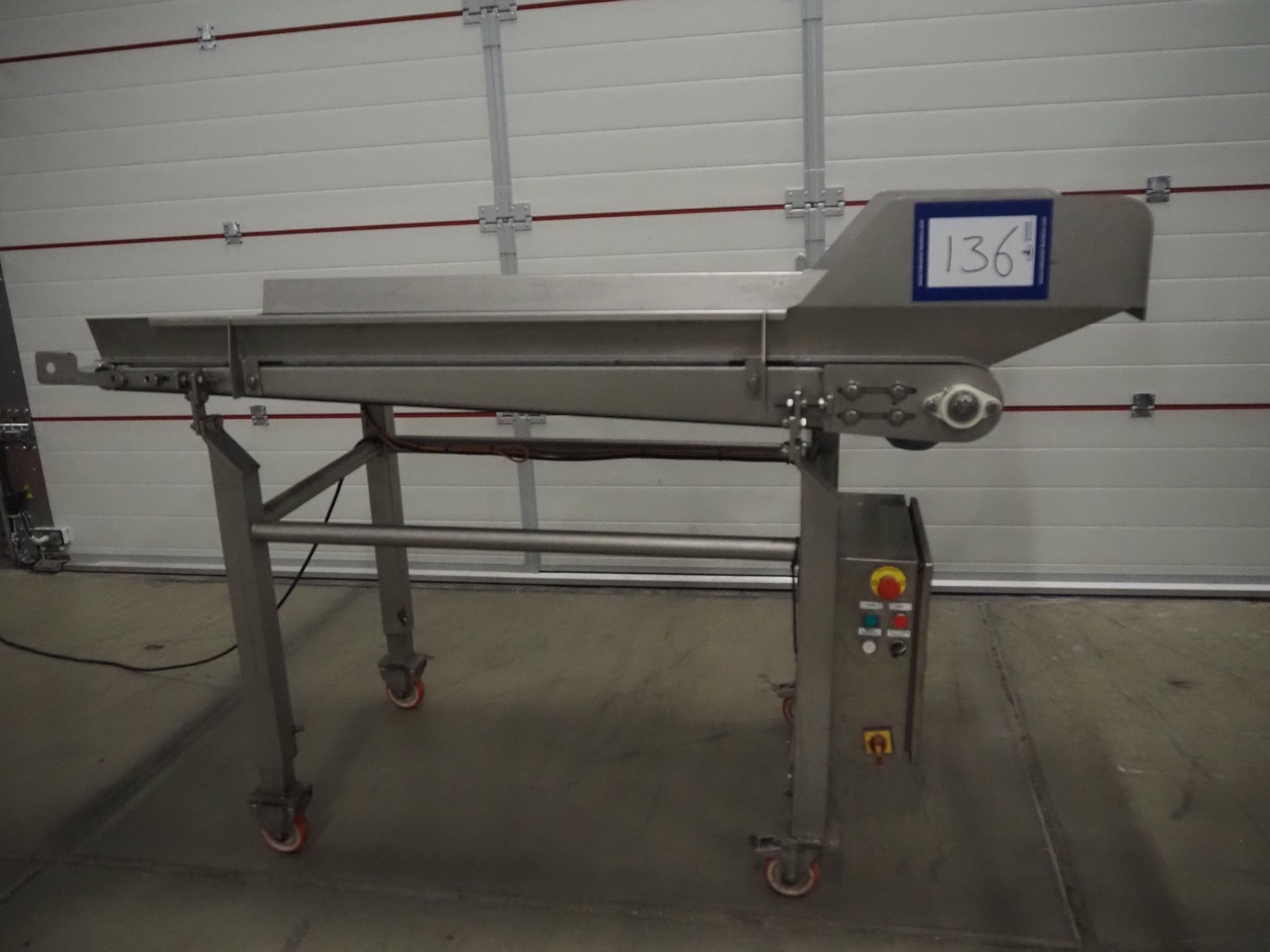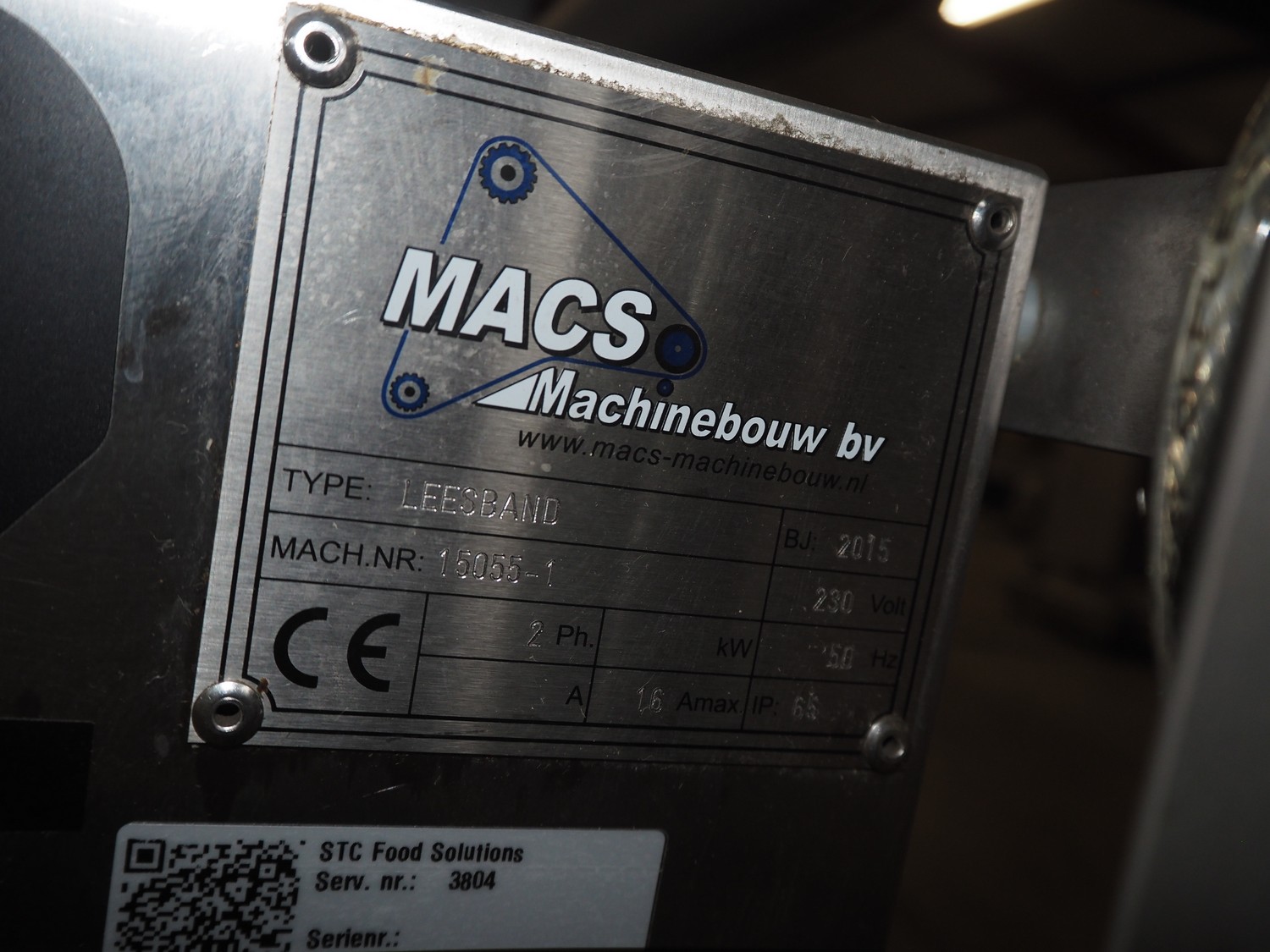 MACS Machinebouw bv mobile transport belt, type: LEESBAND, machine number: 15055-1, year of construction: 2015, 230 V, 2 Ph, 50 Hz, s/s frame, plastic belt, belt width: 570 mm, total dimensions: 1880 mm x 800 mm x 1200 mm.