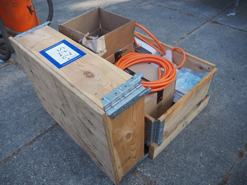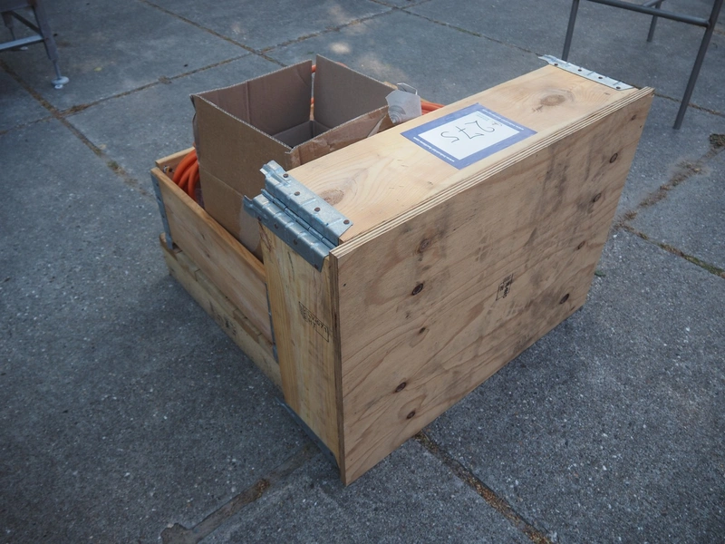 Wooden crate with new parts for Foodeq vibrating gutter, dimensions: 800 mm x 600 mm x 500 mm. Lot located on other location in Urk (NL). Viewing and pick-up in consultation with Industrial Auctions BV.