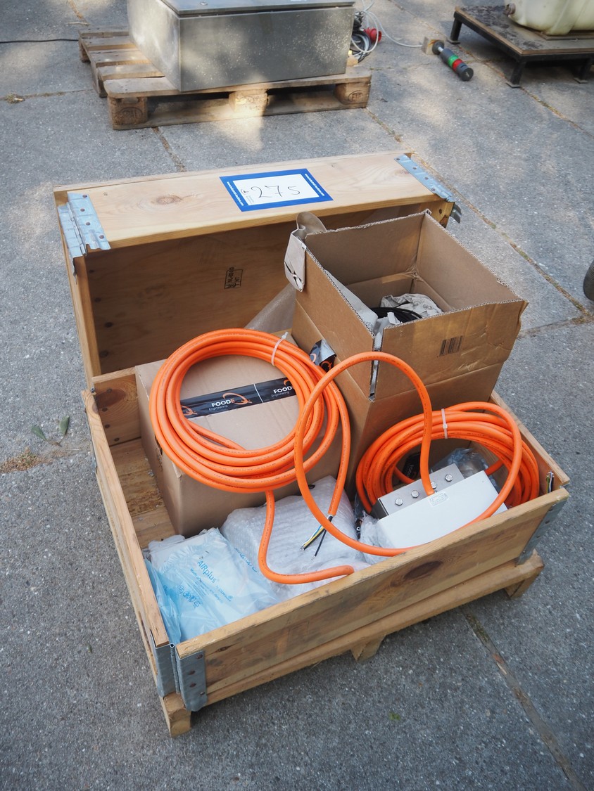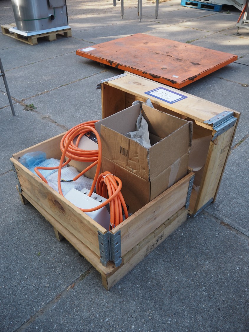 Wooden crate with new parts for Foodeq vibrating gutter, dimensions: 800 mm x 600 mm x 500 mm. Lot located on other location in Urk (NL). Viewing and pick-up in consultation with Industrial Auctions BV.