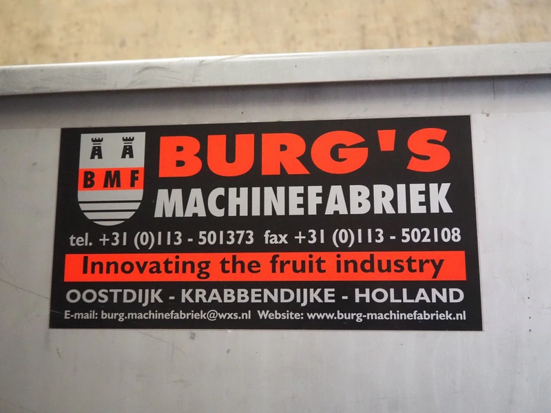Burg's Machinefabriek infeed station for fruit and vegetables, plastic belt, belt width: 1270 mm, total dimensions: 2900 mm x 2350 mm x 1900 mm. Lot located on other location in Urk (NL). Viewing and pick-up in consultation with Industrial Auctions BV.