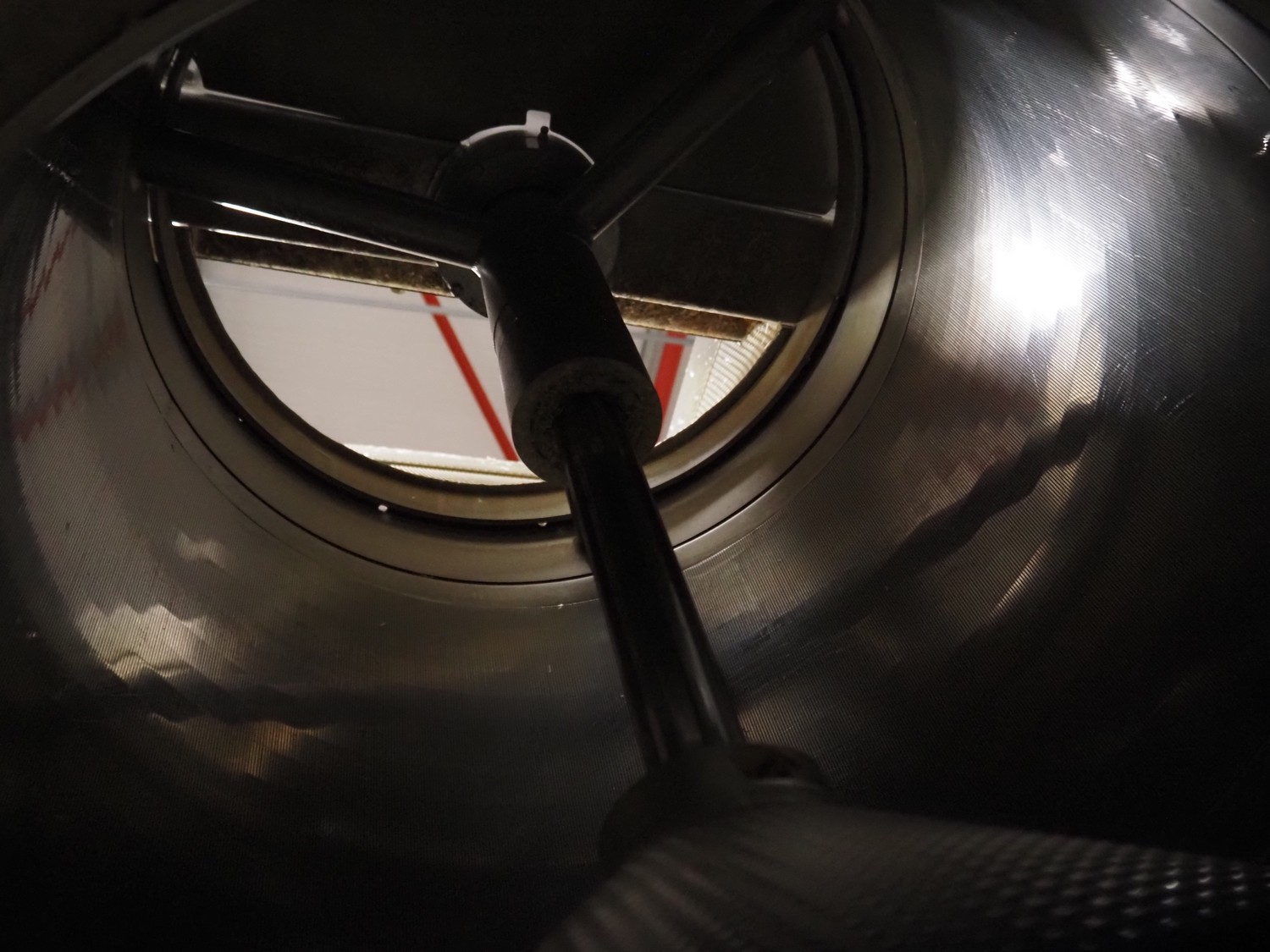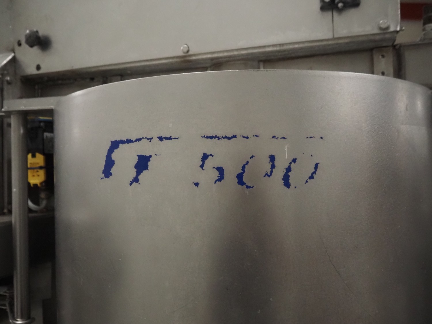 Felcon centrifuge, model: FE-500, inside dimensions: Ø 500 mm x 500 mm, total dimensions: 1750 mm x 1300 mm x 2650 mm.
