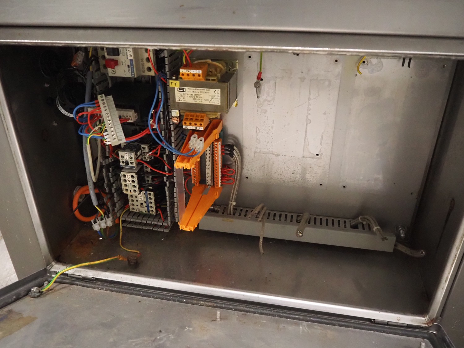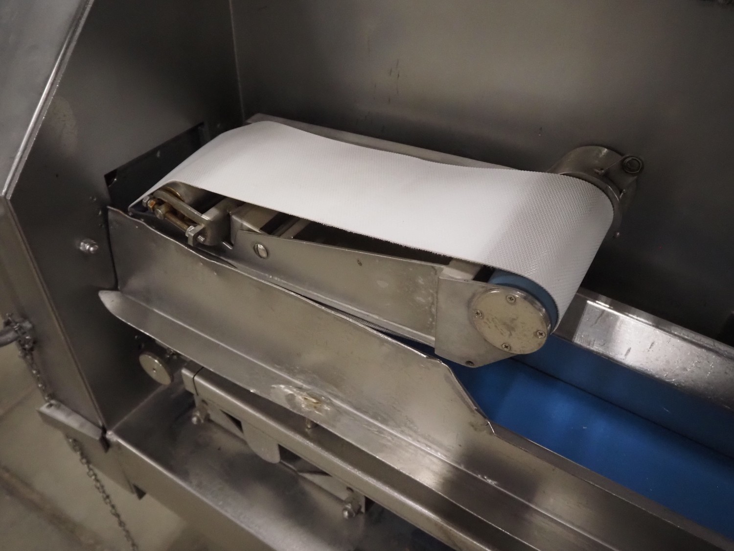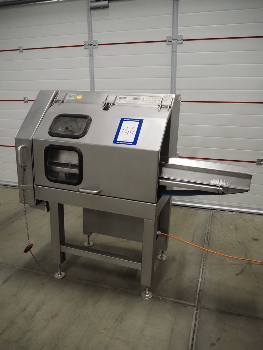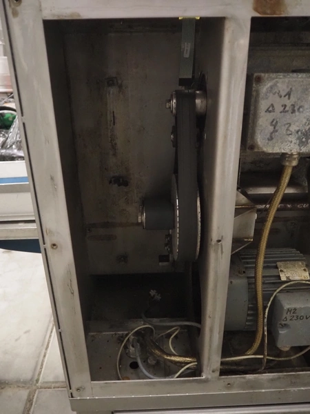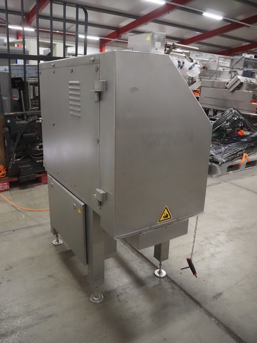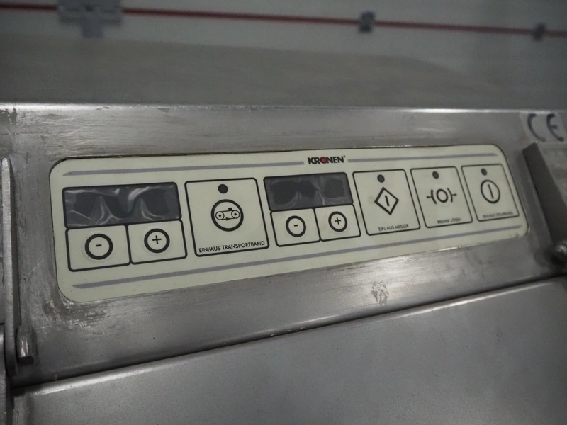 Kronen belt slicer, plastic belt, belt width: 120 mm, total dimensions: 1500 mm x 550 mm x 1300 mm. Missing knife. Switch cabinet incomplete.