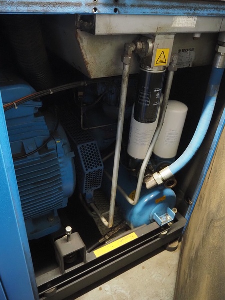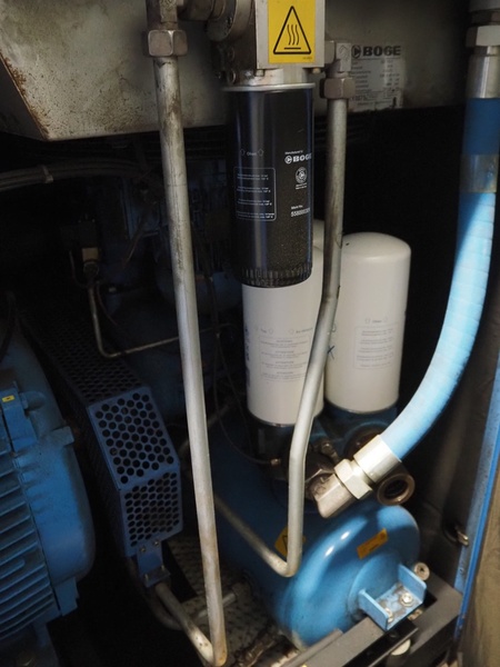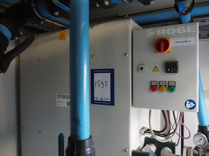 Boge Kompressoren screw air compressor with bluecat and air dryer, screw compressor type: SDF 100-3, machine number: 5136272, year of construction: 2018, 75+2.20 kW, 10 bar, capacity: 2.58/11.00 m³ per hour, dimensions: 2100 mm x 1100 mm x 1950 mm, bluecat type: BC160V, serial number: SV15-049, year of construction: 2019, 400 V, 10 kW, 16 bar, dimensions: 1650 mm x 950 mm x 2120 mm. Lot located in Best (NL). Viewing and pick-up in consultation with Industrial Auctions BV.