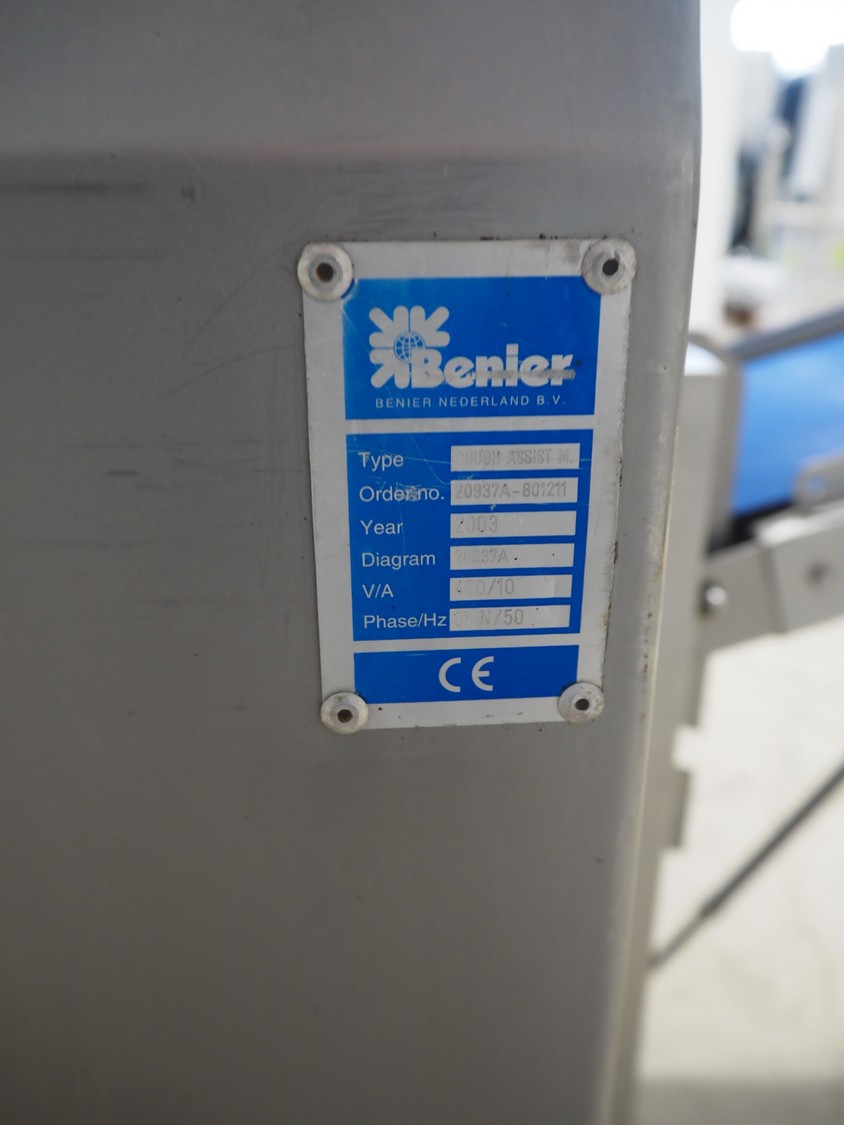 Benier dough divider, type: Dought Assist M. number: 20937A-801211, year of construction: 2003, 400 V, 3 Ph, 50 Hz, 10 A, plastic outfeed belt, belt width: 300 mm, total dimensions: 1700 mm x 1300 mm x 1650 mm.