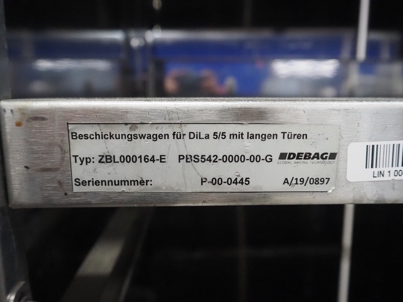 DEBAG loading trolley, type: ZBL000164-E, serial number: P-00-0445, dimensions: 770 mm x 500 mm x 2000 mm.