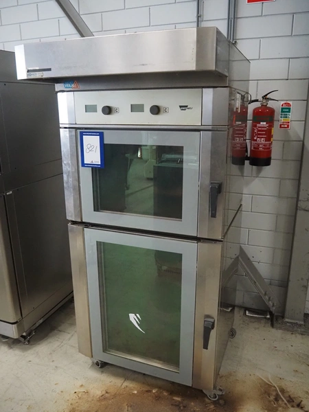 Wiesheu GmbH mobile double stacked oven, model: B08-B4-EM-Vario, serial number: 10316027, year of construction: 10/2009, 400 V, 3 Ph, 50 Hz, 32 A, 20.8 kW, 5 and 10 floors, floor dimensions: 610 mm x 400 mm, total dimensions: 1200 mm x 930 mm x 2070 mm.
