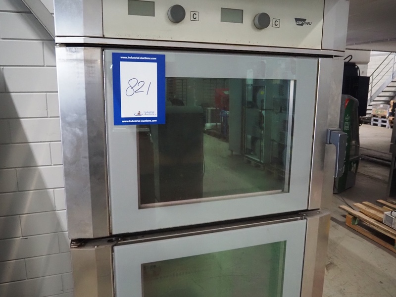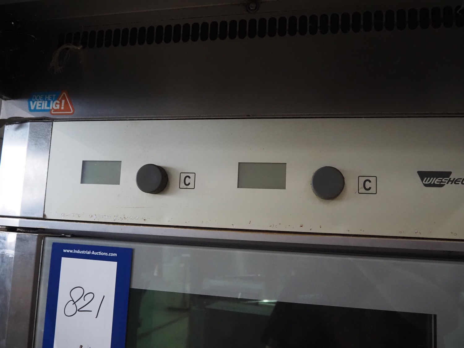 Wiesheu GmbH mobile double stacked oven, model: B08-B4-EM-Vario, serial number: 10316027, year of construction: 10/2009, 400 V, 3 Ph, 50 Hz, 32 A, 20.8 kW, 5 and 10 floors, floor dimensions: 610 mm x 400 mm, total dimensions: 1200 mm x 930 mm x 2070 mm.