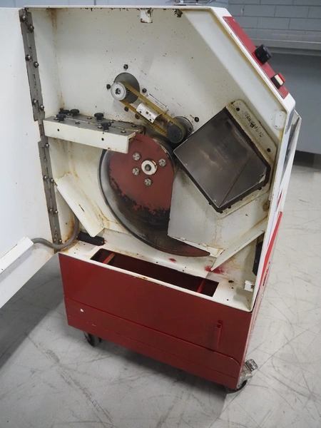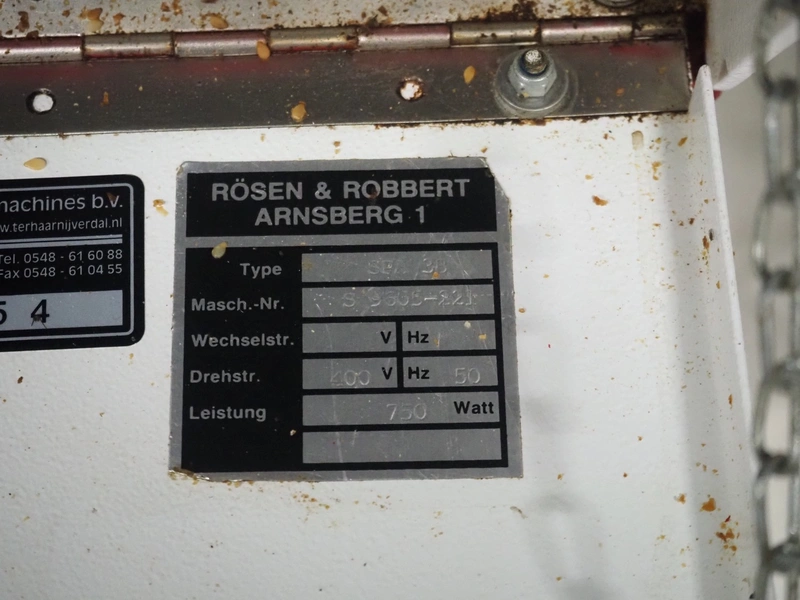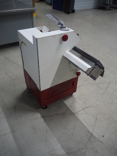 Rösen & Robbert mobile bread slicer, type: SPA 38, machine number: S 9665-221, 400 V, 50 Hz, 750 W, dimensions chamber: 170 mm x 120 mm, total dimensions: 1000 mm x 650 mm x 1150 mm.