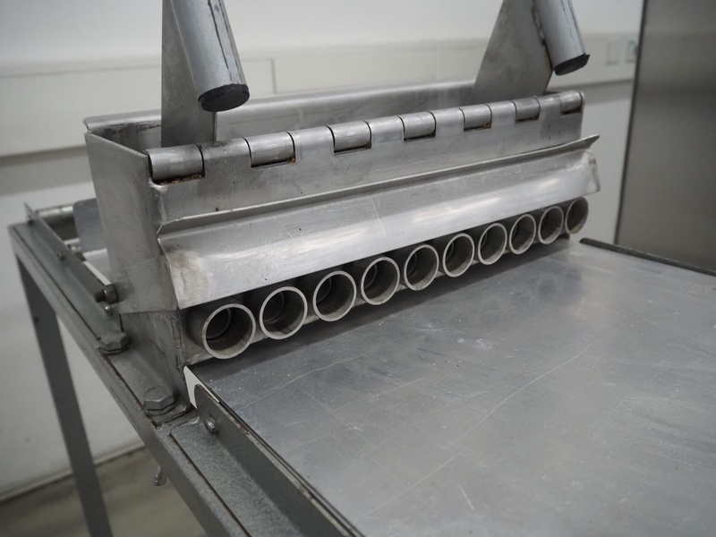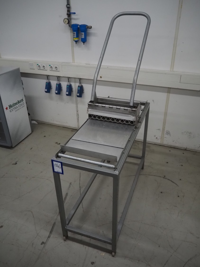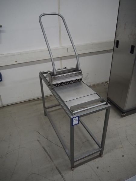 S/s almond press on mobile frame, dye: (10x) 20 mm, total dimensions: 1420 mm x 430 mm x 1000 mm.