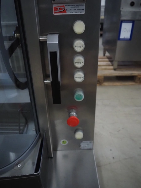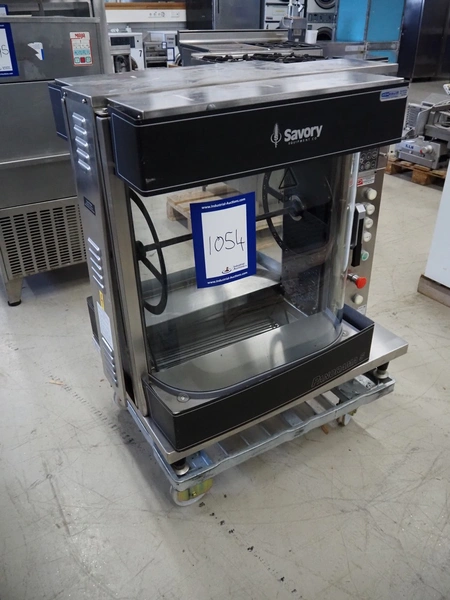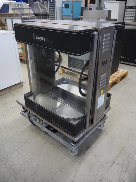 Merco Savory rotisserie grill on s/s trolley, model: SP-5, type: Panorama 5, 6 kW, 1 grill basket, dimensions basket: 450 mm x 160 mm, total dimensions: 860 mm x 625 mm x 1100 mm.