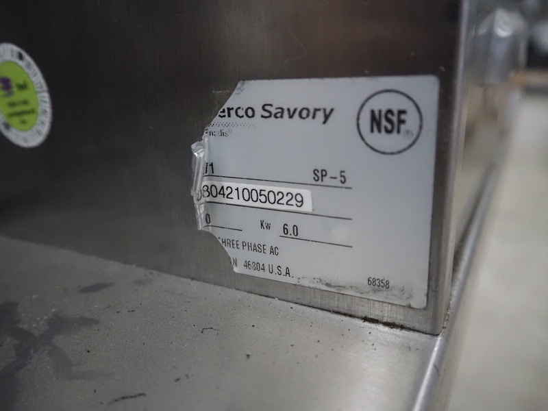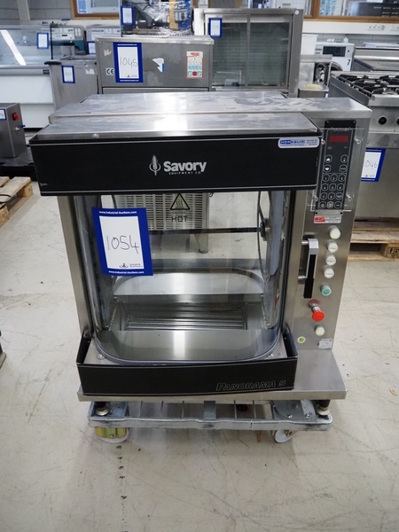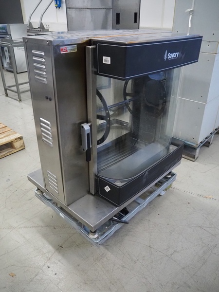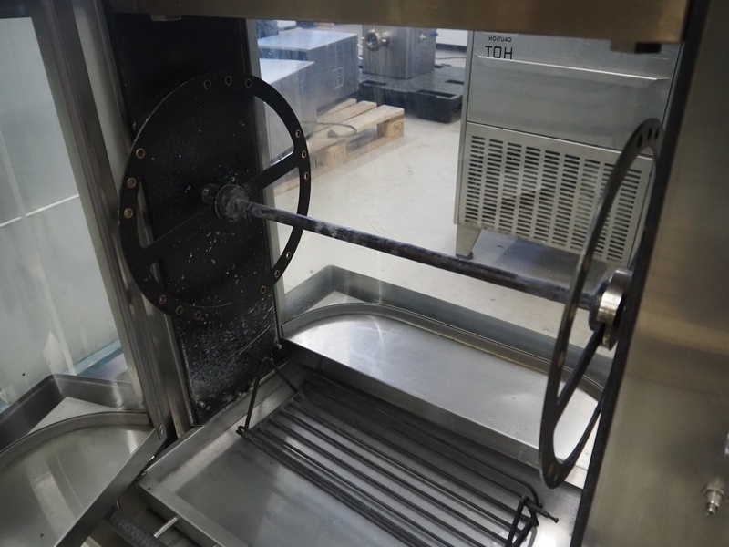 Merco Savory rotisserie grill on s/s trolley, model: SP-5, type: Panorama 5, 6 kW, 1 grill basket, dimensions basket: 450 mm x 160 mm, total dimensions: 860 mm x 625 mm x 1100 mm.