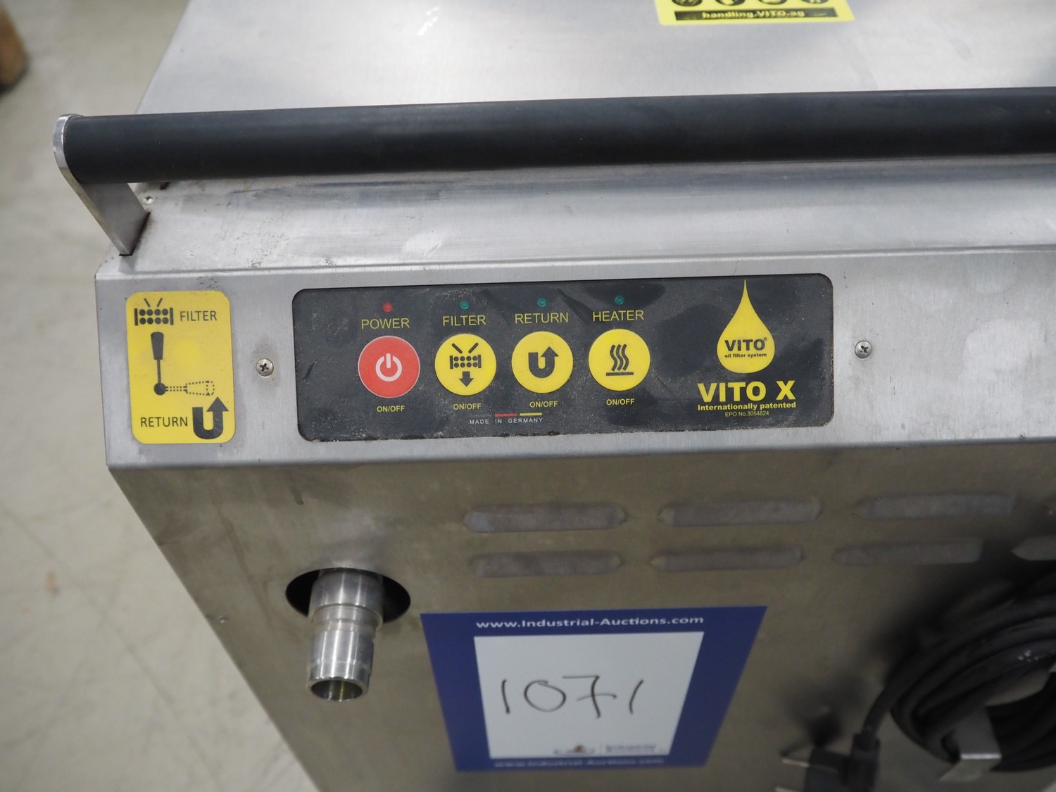 Vito AG mobile oil filter, model: Vito XS, serial number: 754, 220-240 V, 50/60 Hz, dimensions: 550 mm x 550 mm x 680 mm.
