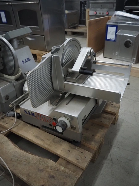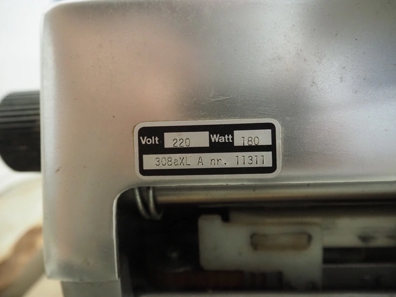 S.A.M. slicer, model: 308aXL A, number: 11311, 220 V, 180 W, dimensions: 670 mm x 600 mm x 450 mm.