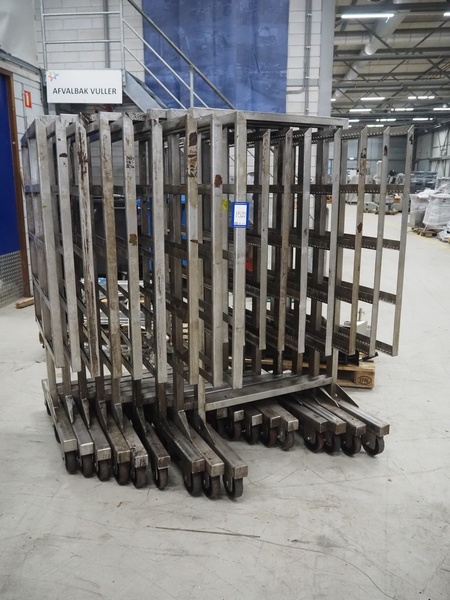10 s/s smoke trolleys, 5 floors each, dimensions each floor: 960 mm x 900 mm, total dimensions: (10x) 960 mm x 910 mm x 1800 mm.€ 1.000,000 bids14/10/2025 13:10 -