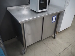 Mobile s/s cabinet, 2 floors, floor dimensions: 545 mm x 1050 mm, total dimensions: 1300 mm x 820 mm x 1055 mm.0 bidsLot is closed -