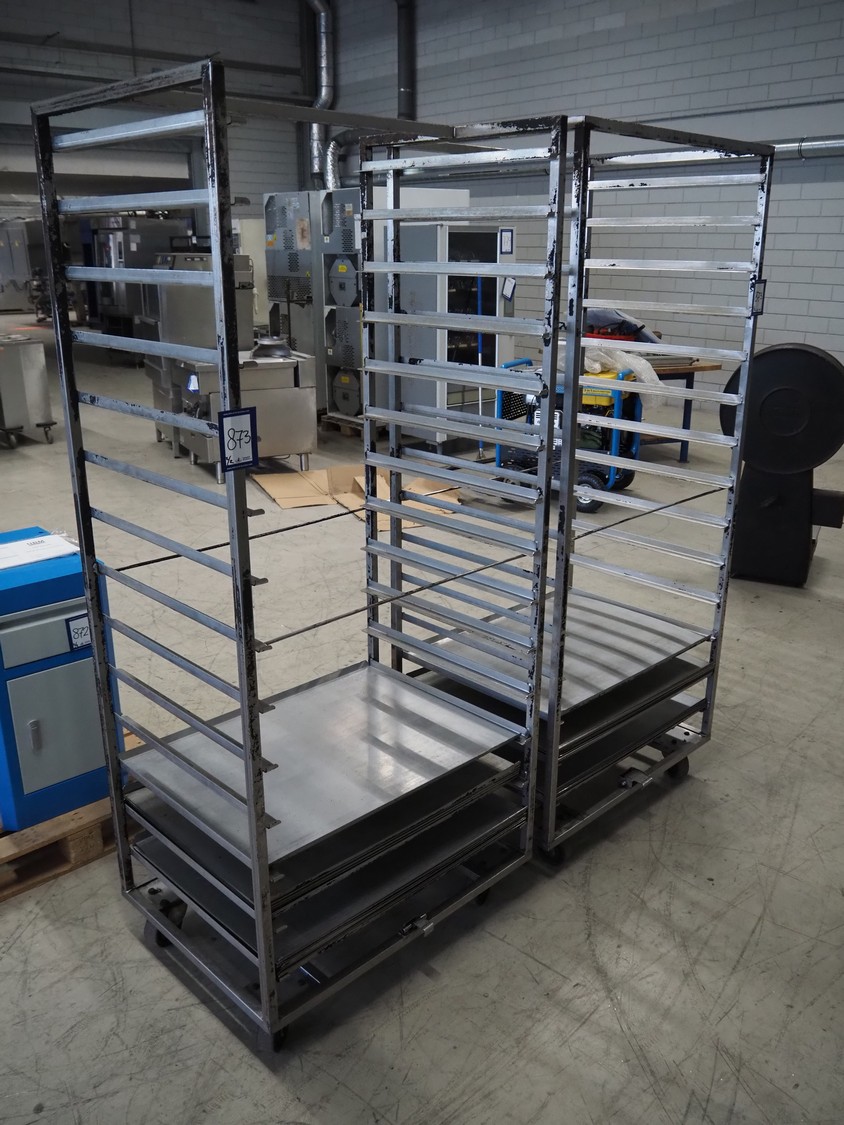2 s/s trolleys, 14 floors each, floor dimensions: 810 mm x 630 mm, total dimensions: (2x) 870 mm x 650 mm x 1940 mm.