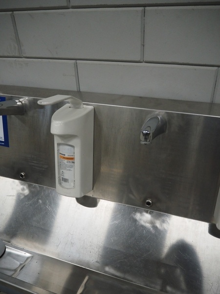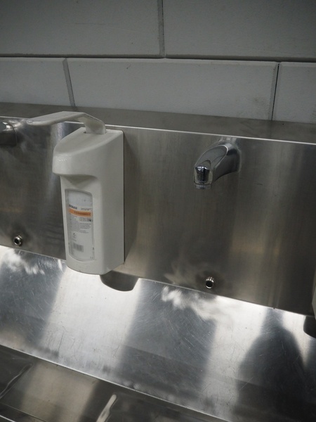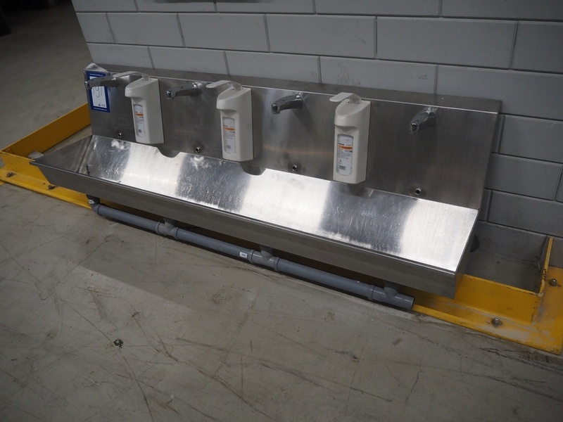 S/s sink with 4 faucets and 3 soap dispensers, dimensions: 2000 mm x 460 mm x 750 mm.