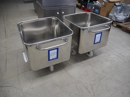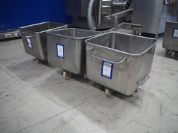 3 s/s meat bins, volume: 120 liter, dimensions: (3x) 700 mm x 570 mm x 800 mm.17 bidsLot is closed