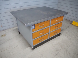 Mobile table, s/s top, wooden drawers, dimensions: 1520 mm x 1100 mm x 930 mm.€ 110,001 bid14/10/2025 15:40 -