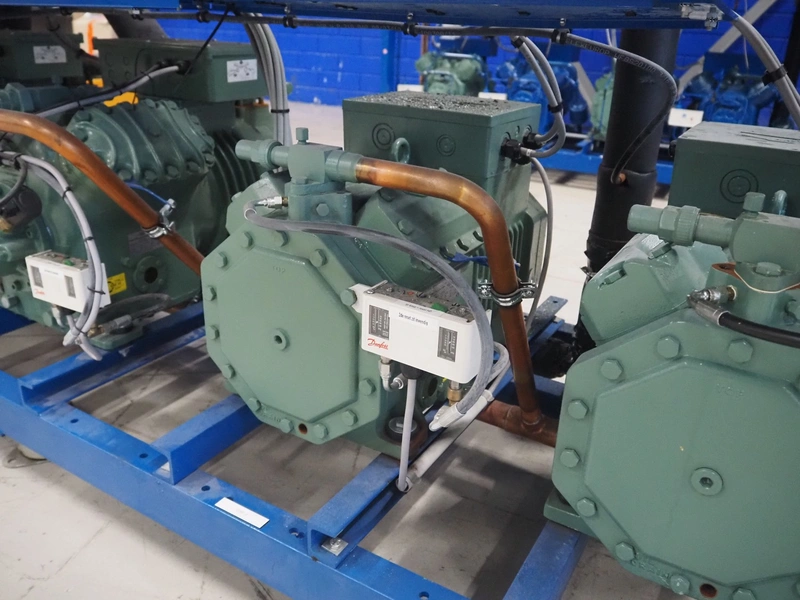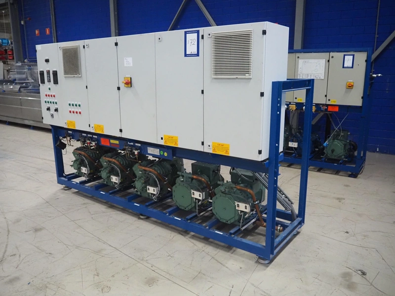 Carrier compressor rack with 5 Bitzer Kühlmaschinenbau GmbH cooling compressors, type: 4J-22.2Y-40P, (2x) 4J-13.2Y-40P, 4PCS-10.2Y-40P and 4PES-12Y-40P, year of construction: June 2010, refrigerant: R507, 387 kg, dimensions: 3200 mm x 920 mm x 1900 mm.