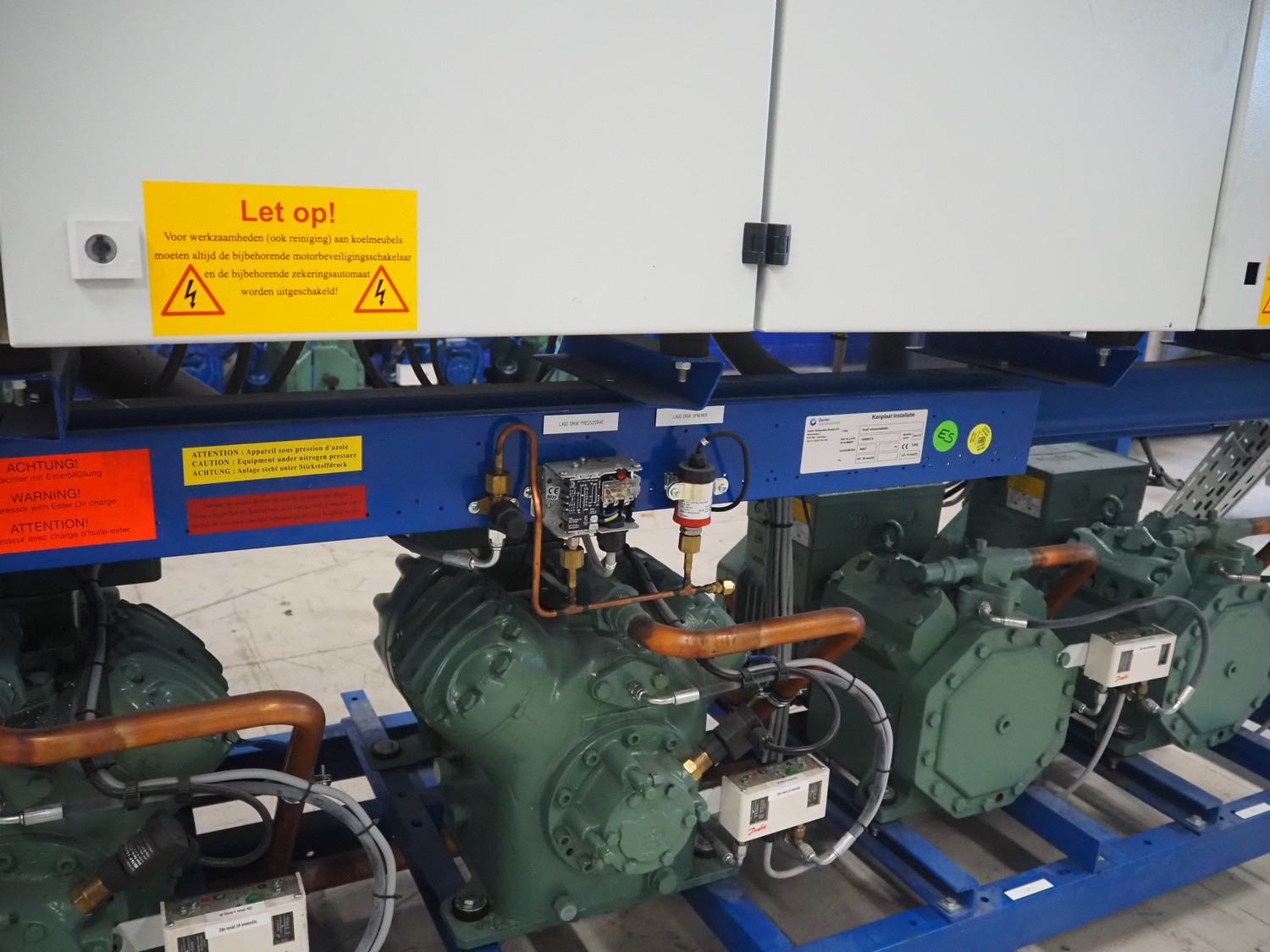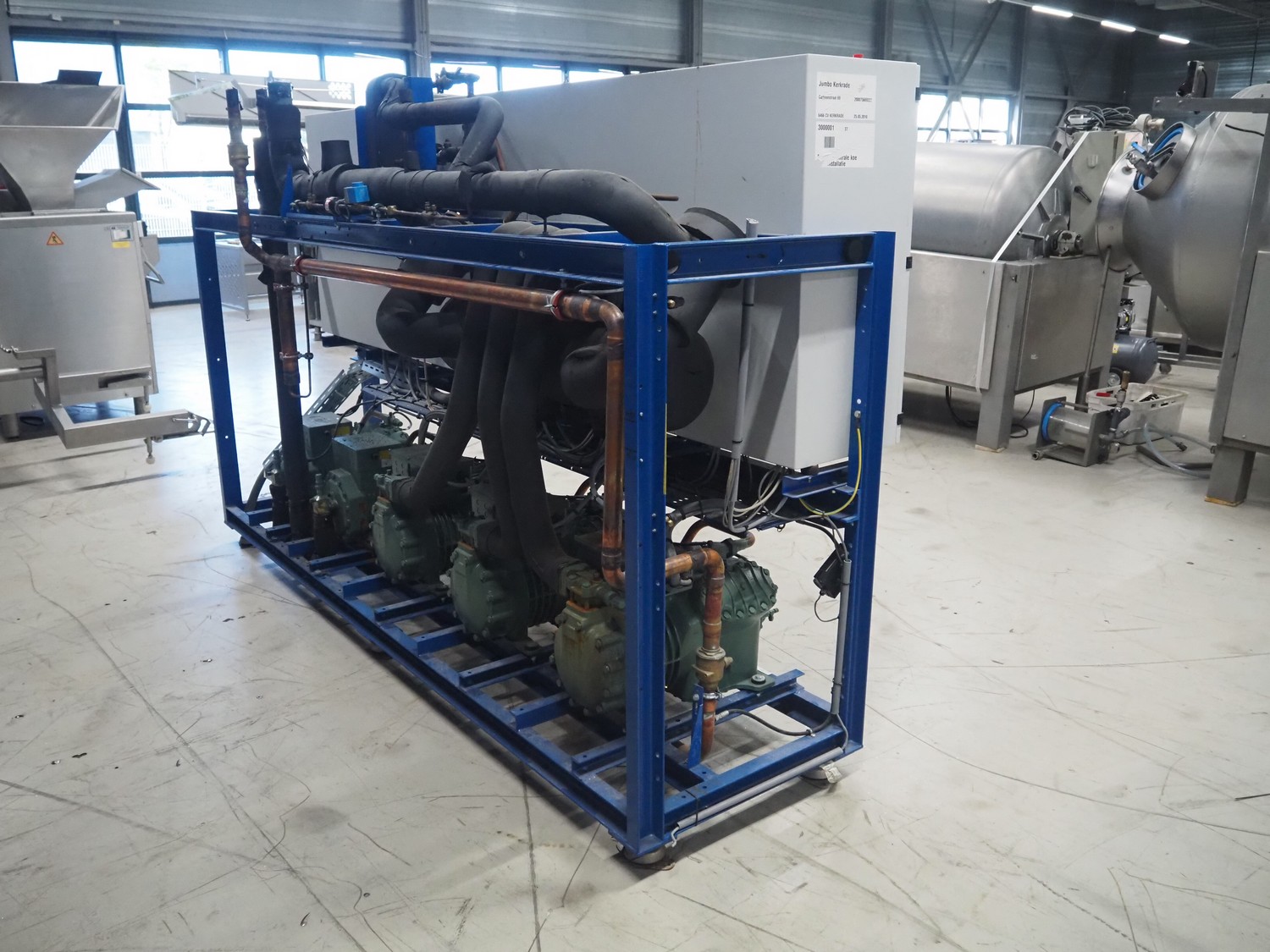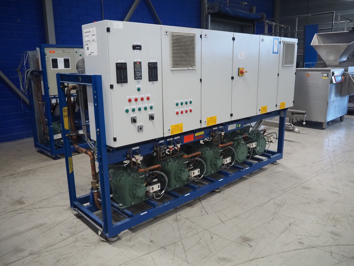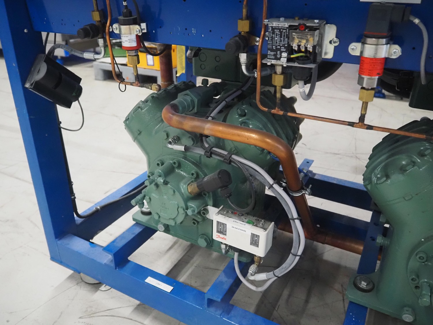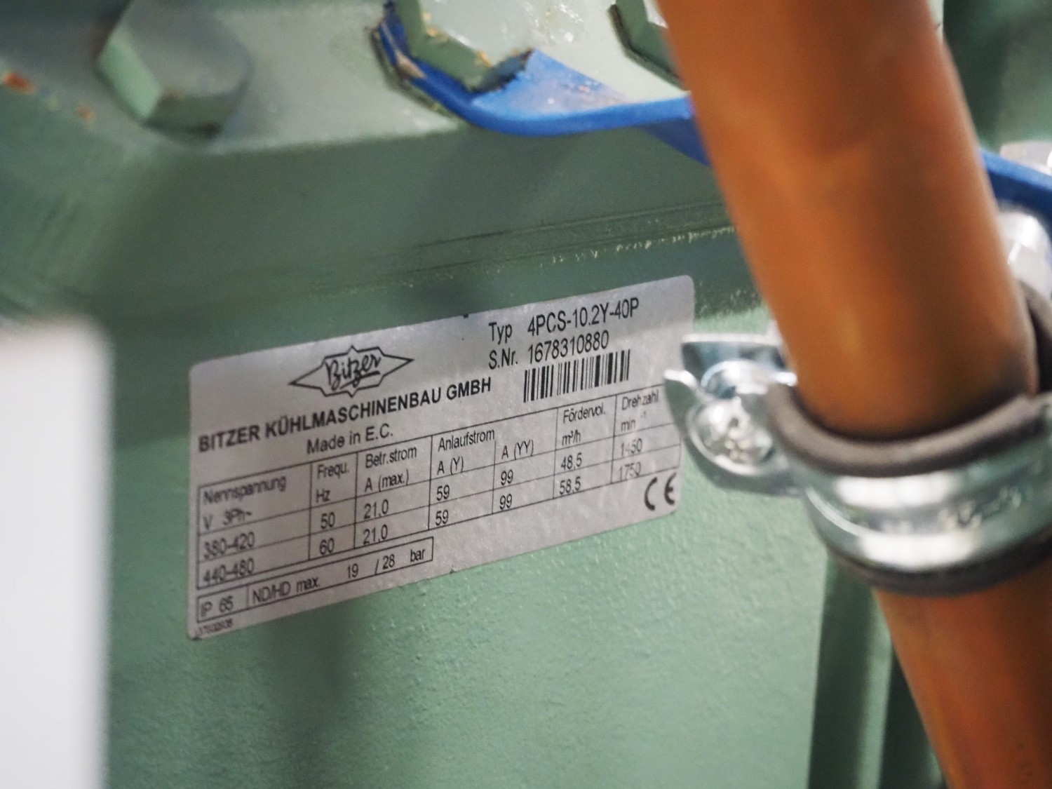 Carrier compressor rack with 5 Bitzer Kühlmaschinenbau GmbH cooling compressors, type: 4J-22.2Y-40P, (2x) 4J-13.2Y-40P, 4PCS-10.2Y-40P and 4PES-12Y-40P, year of construction: June 2010, refrigerant: R507, 387 kg, dimensions: 3200 mm x 920 mm x 1900 mm.