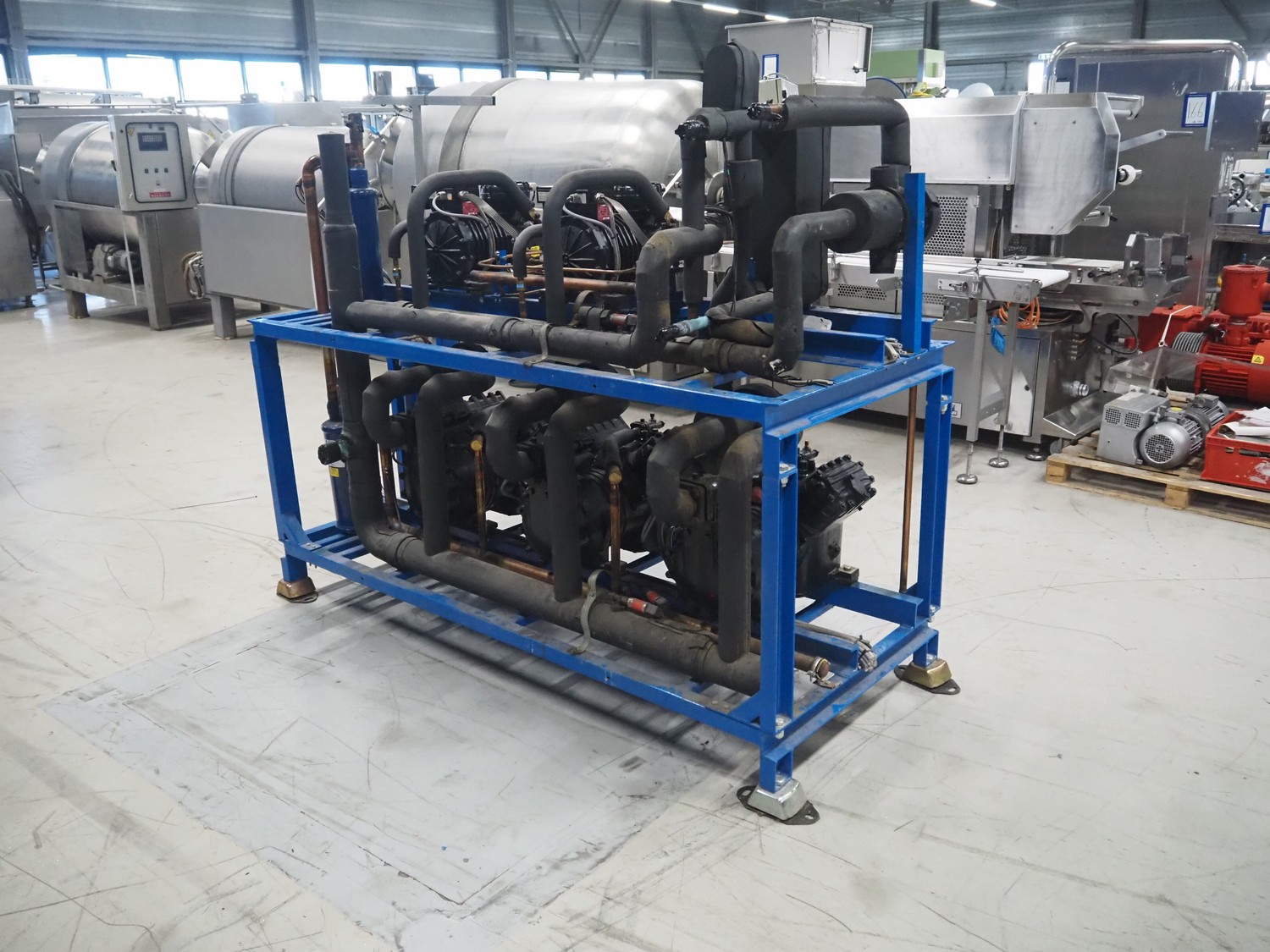 Fri Jado B.V. compressor rack with 5 cooling compressors, dimensions: 2200 mm x 920 mm x 1850 mm, dimensions switch cabinet: 2000 mm x 900 mm x 500 mm.