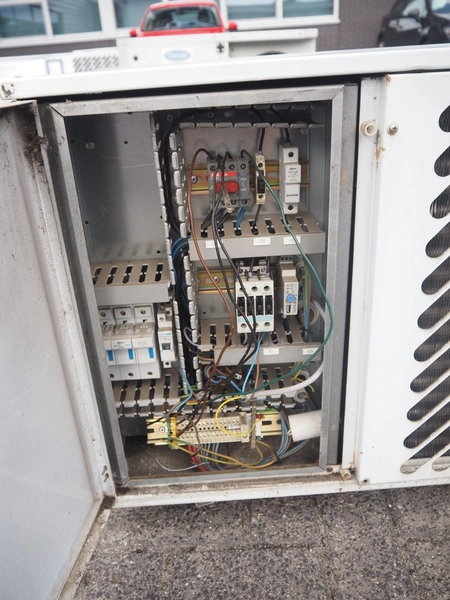 Electrolux condensing unit: type: GCU401N0170E, number: 110024A, 400 V, 3 Ph, 50 Hz, 5.00 A, 2.40 kW, refrigerant: R404a / 6 kg, dimensions: 1160 mm x 580 mm x 600 mm.