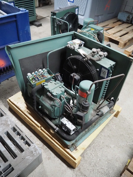Bitzer Kühlmaschinenbau GmbH condensing unit with Bitzer Kühlmaschinenbau GmbH cooling compressor, type cooling compressor: 2JC-07.2Y-40S, serial number: 1683008954, capacity: 5.2/6.3 m³ per hour, dimensions: 670 mm x 500 mm x 570 mm.