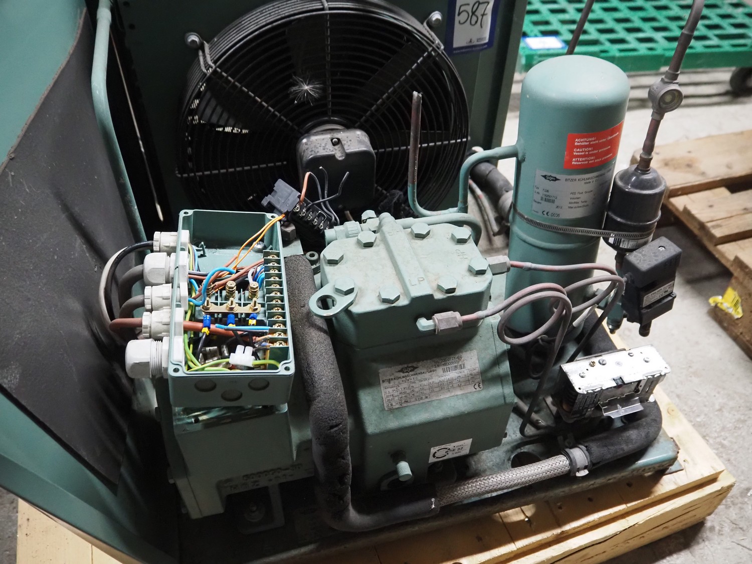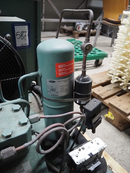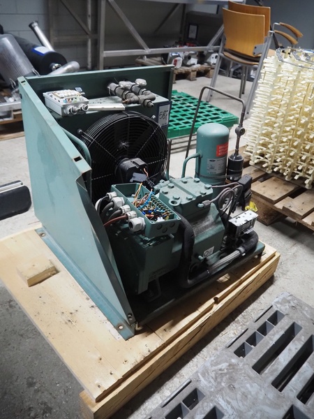 Bitzer Kühlmaschinenbau GmbH condensing unit with Bitzer Kühlmaschinenbau GmbH cooling compressor, type cooling compressor: 2JC-07.2Y-40S, serial number: 1683008954, capacity: 5.2/6.3 m³ per hour, dimensions: 670 mm x 500 mm x 570 mm.