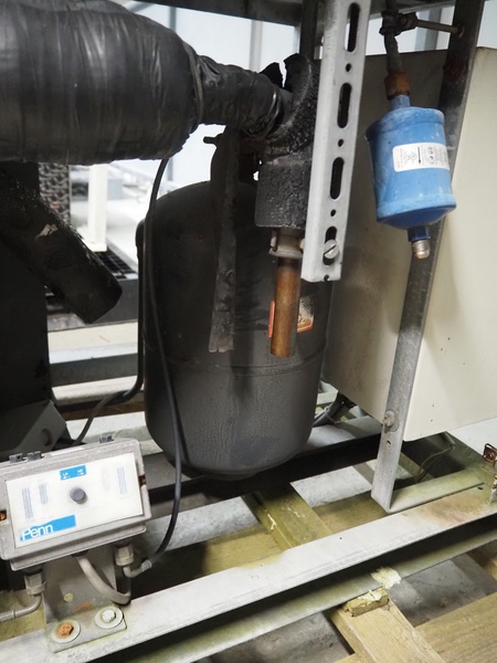 Bitzer Kühlmaschinenbau GmbH condensing unit with cooling compressor, type: 20-4.2, capacity: 22/14 m3 per hour, dimensions: 1250 mm x 650 mm x 6830 mm.