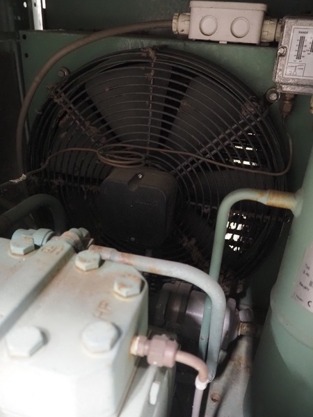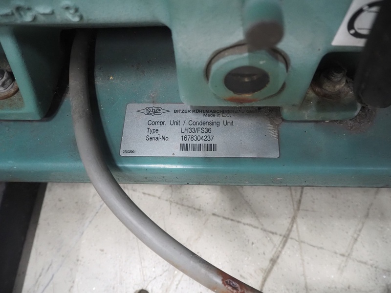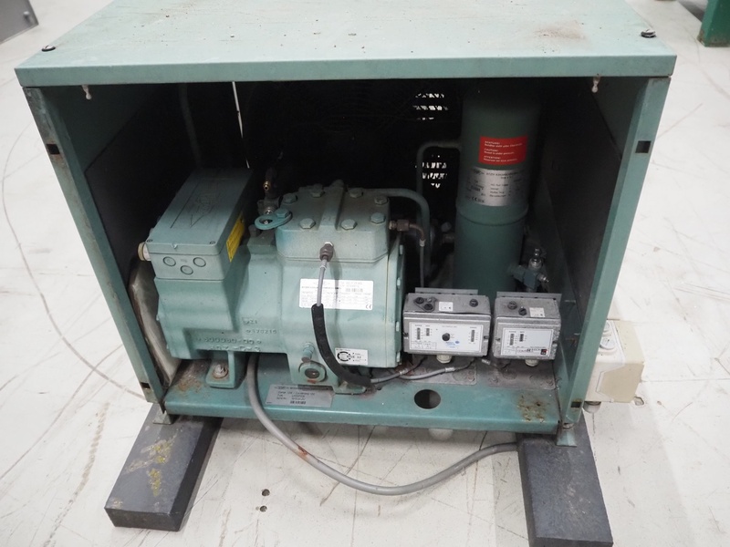 Bitzer Kühlmaschinenbau GmbH condensing unit with cooling compressor, type condensing unit: FS36, serial number: 1678304237, type cooling compressor: 2JC-07.2Y-40S, serial number: 1678309172, capacity: 5.2/6.3 m³ per hour, dimensions: 680 mm x 900 mm x 635 mm.
