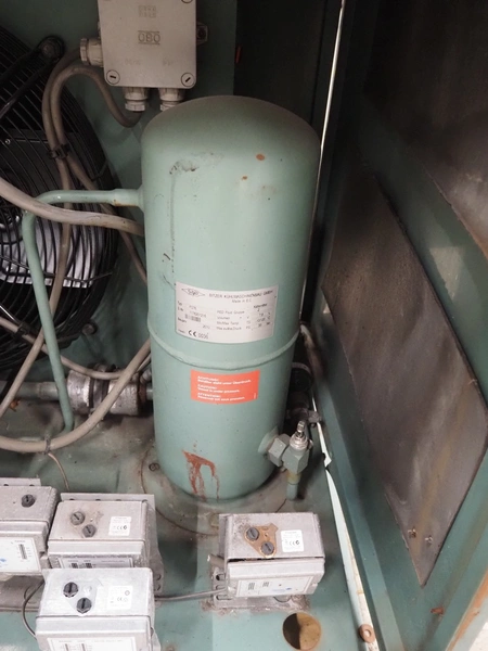 Bitzer Kühlmaschinenbau GmbH condensing unit with cooling compressor, type condensing unit: FS76, serial number: 1678310039, type cooling compressor: 2CC-3.2Y-40S, serial number: 1677012201, capacity: 16.2/19.6 m³ per hour, dimensions: 670 mm x 940 mm x 920 mm.