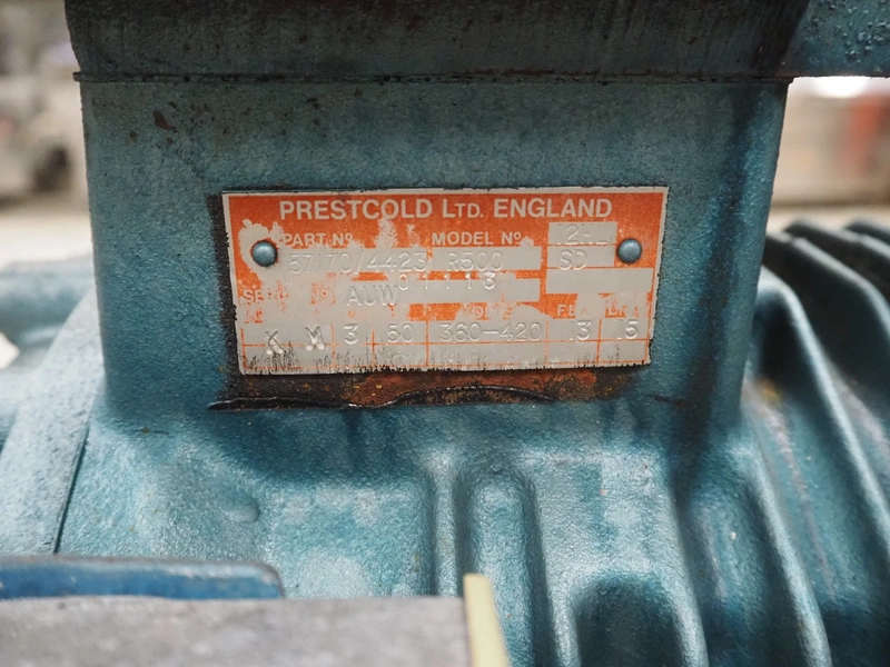 Prestcold cooling unit with Prestcold cooling compressor, model: I2HL, serial number: AUW 01113, dimensions: 1100 mm x 1800 mm.