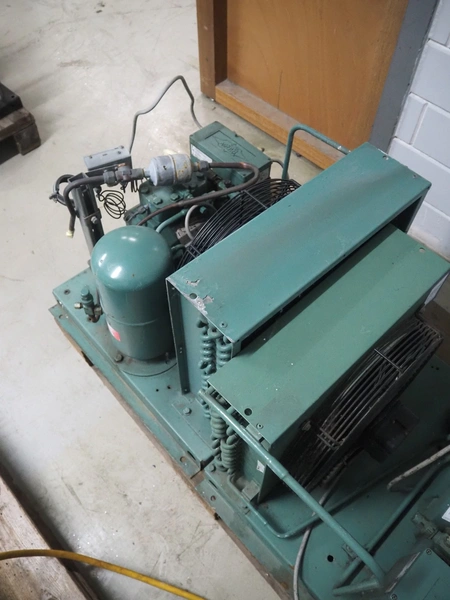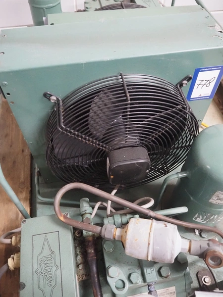 Bitzer Kühlmaschinenbau GmbH cooling compressor with condenser, type: 2FC-3.2Y-40S, serial number: 1270802615, dimensions: 650 mm x 550 mm x 500 mm.