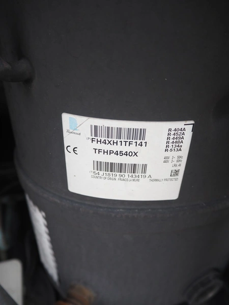 Cabinet with 3 Tecumseh cooling compressors, model: TFHP4540X, refrigerant: R507, dimensions: 2400 mm x 750 mm x 800 mm.