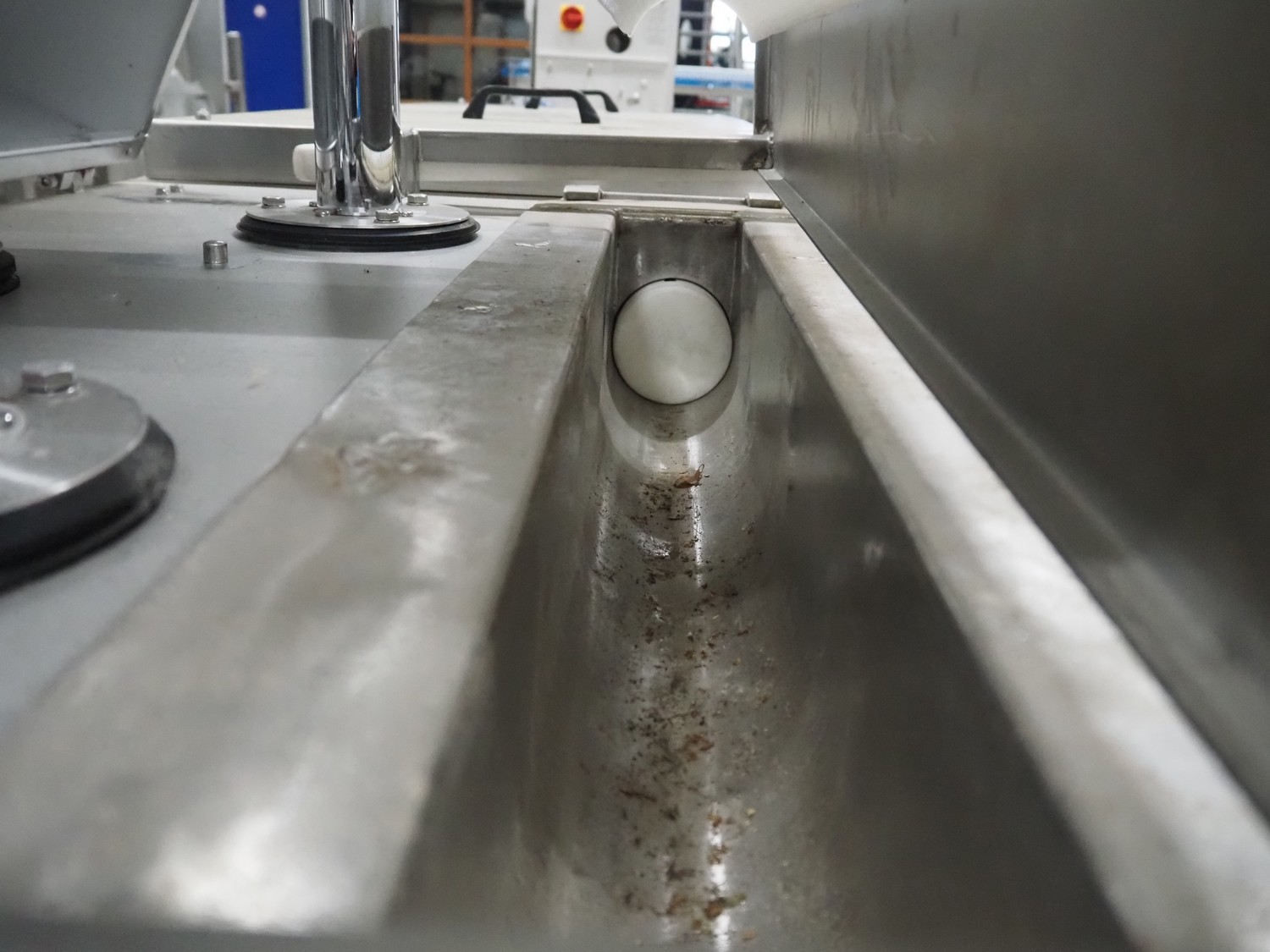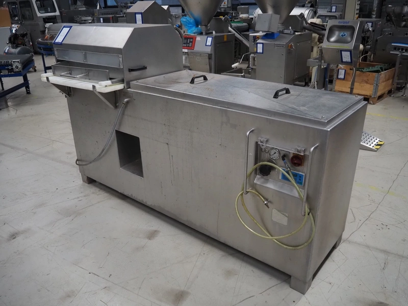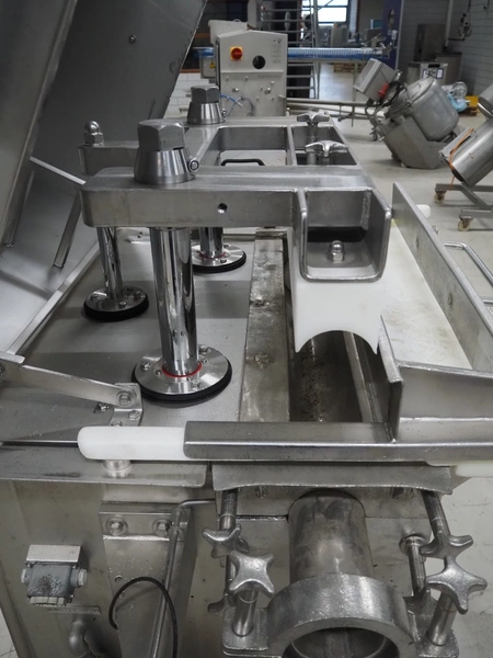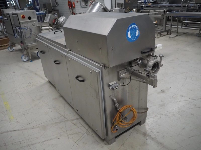 Schröder meat press, type: HAMAX 800, number: HA 805 03, year of construction: 2003, 400 V, 50 Hz, 10 A, 4 kW, pipe diameter: 95 mm, total dimensions: 2750 mm x 850 mm x 1700 mm.