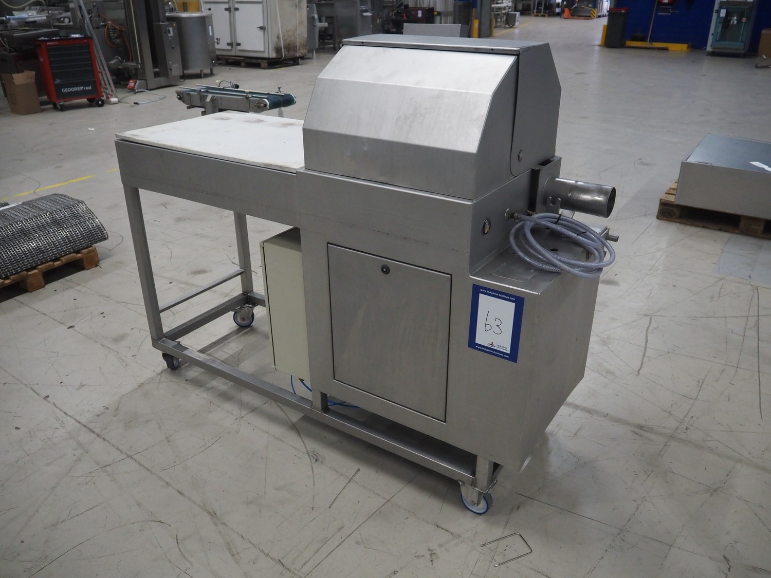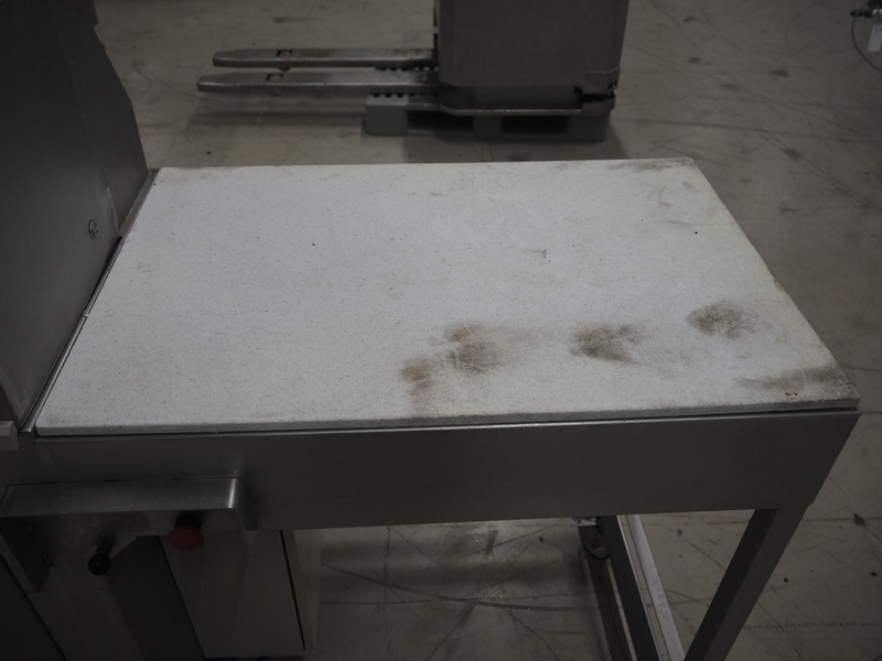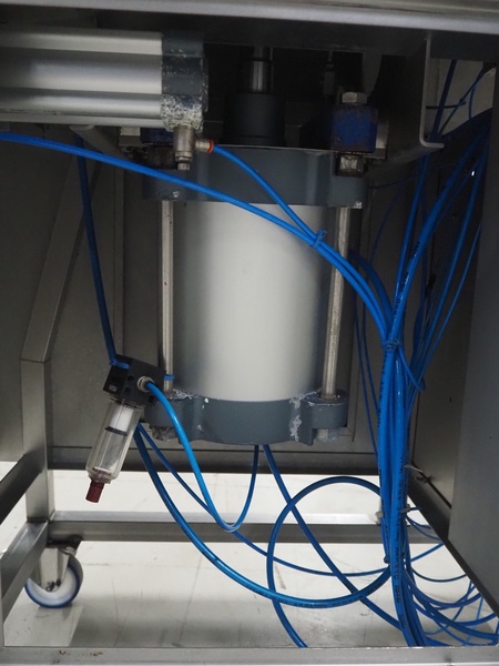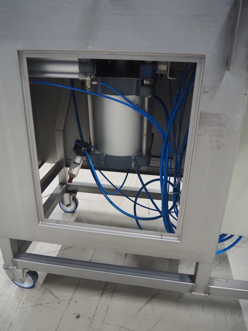 Mobile meat press, diameter press: 100 mm, total dimensions: 1800 mm x 580 mm x 1460 mm.